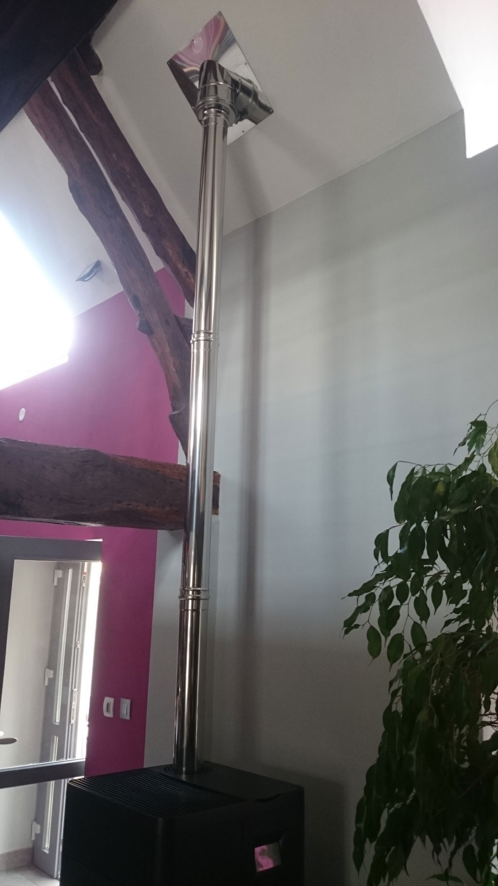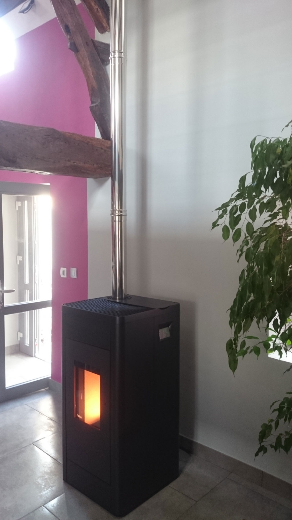 Installtion d'un poêle à granulés de bois de marque RIKA modèle Filo avec création de conduit inox