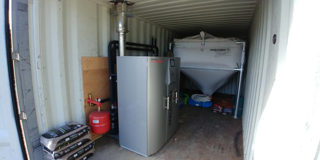 Installation d'une chaudière à granulés de bois de marque HARGASSNER modèle classic 22kW avec production d'eau chaude sanitaire et chauffage d'une piscine l'été via un échangeur PSA Zodiac