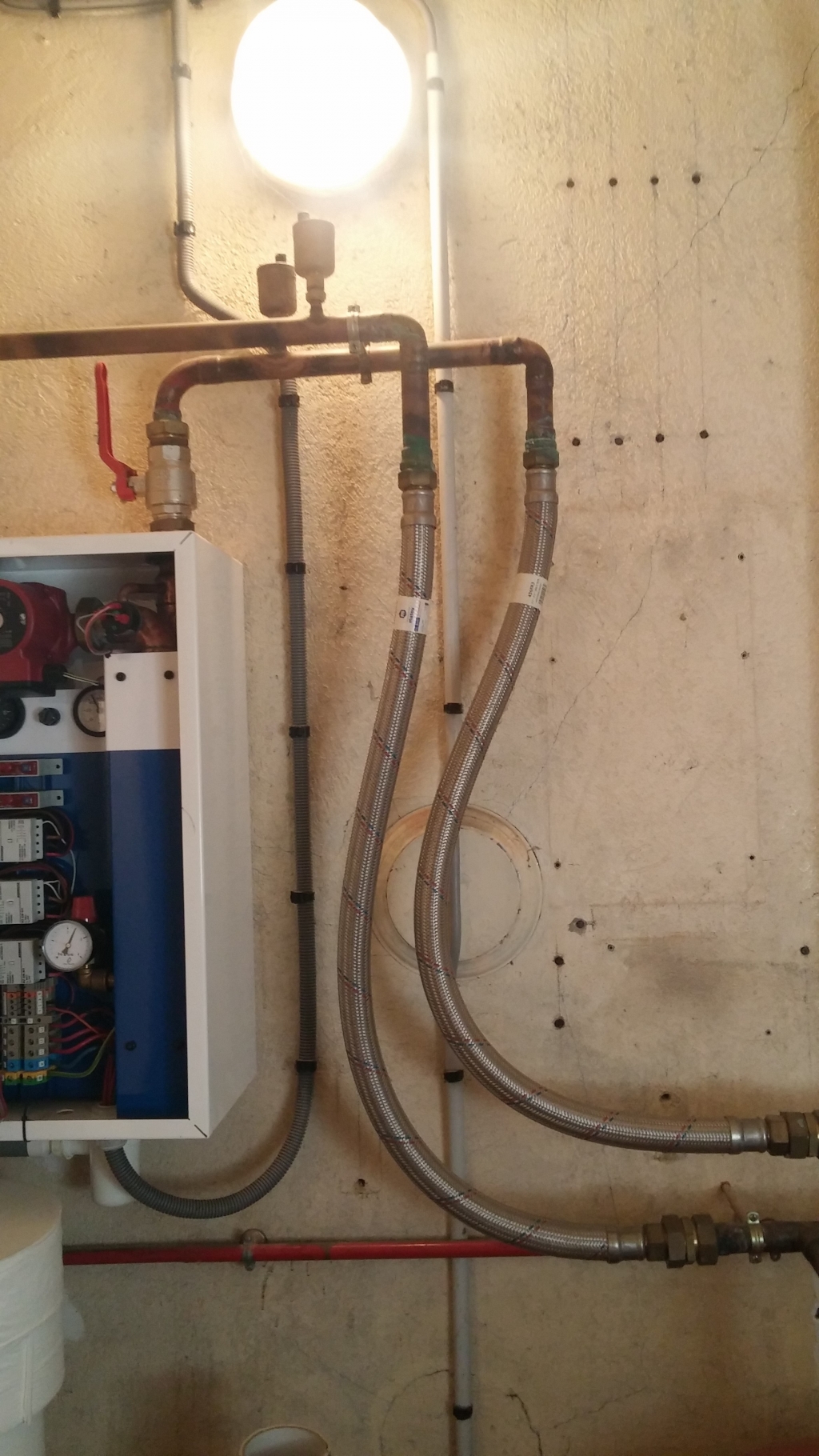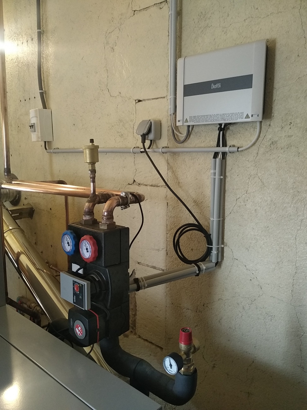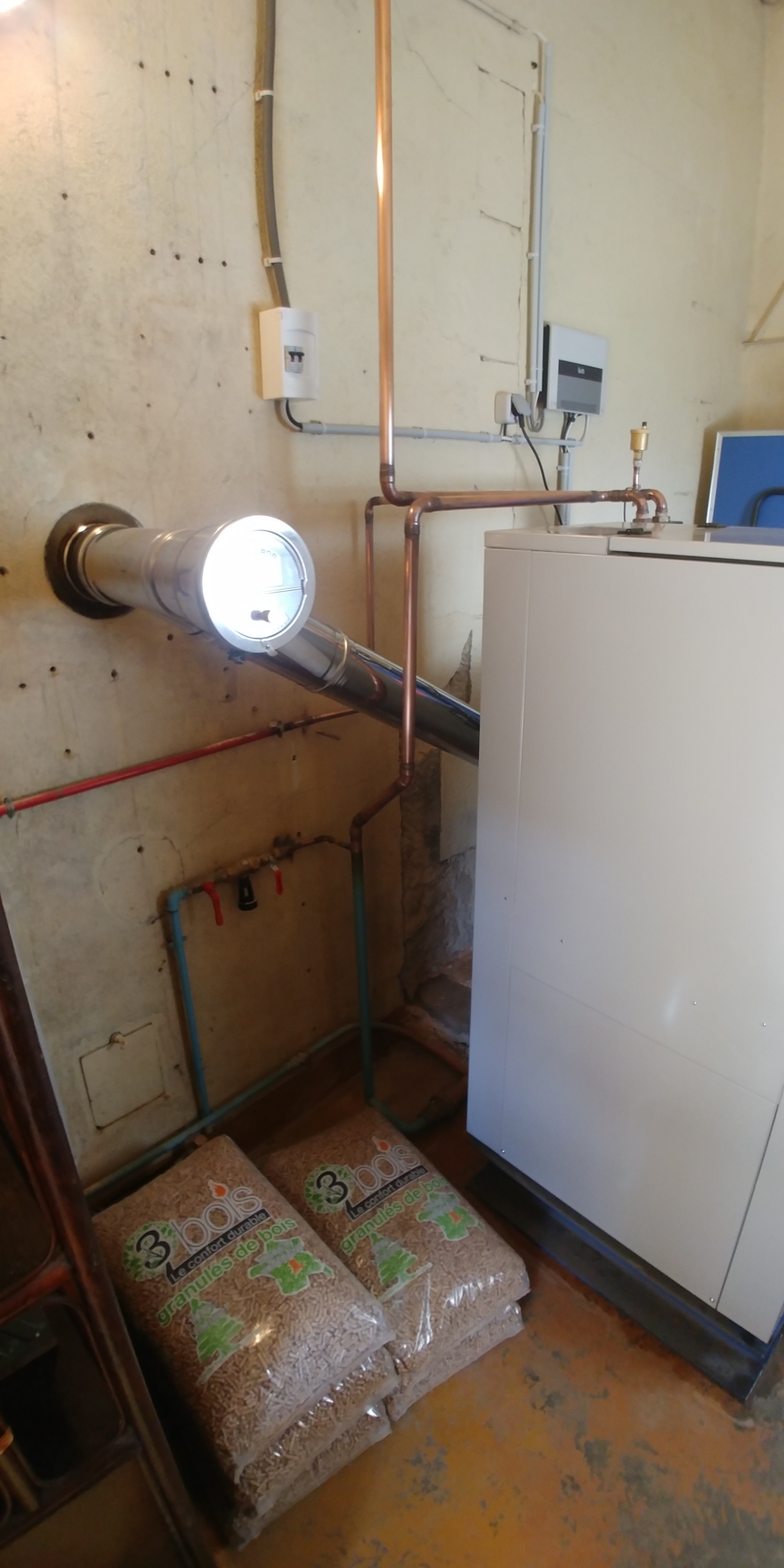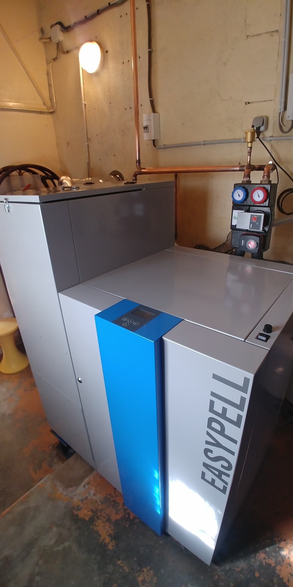 Installation d'une chaudière à granulés de bois modèle Easypell 5-16 kW sous licence Okofen.