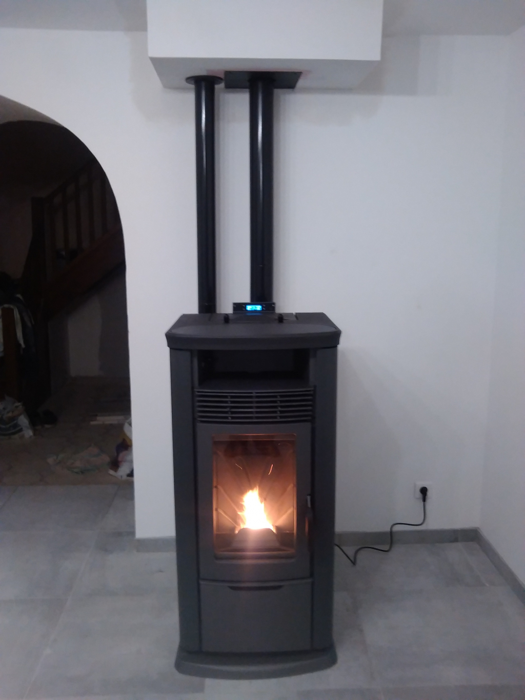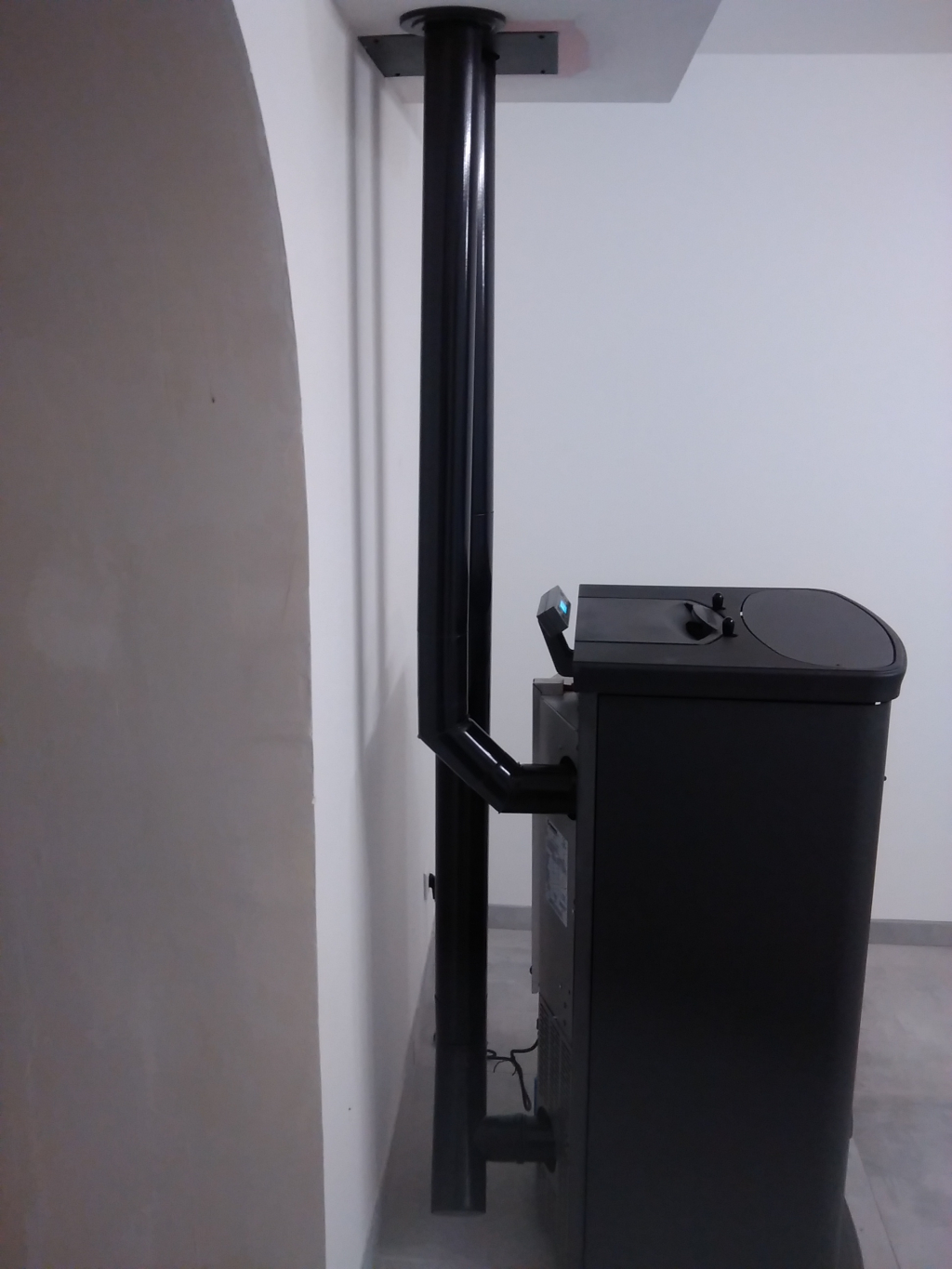Installation d'un poêle à granulés de bois THERMOROSSI, modèle 7000 :