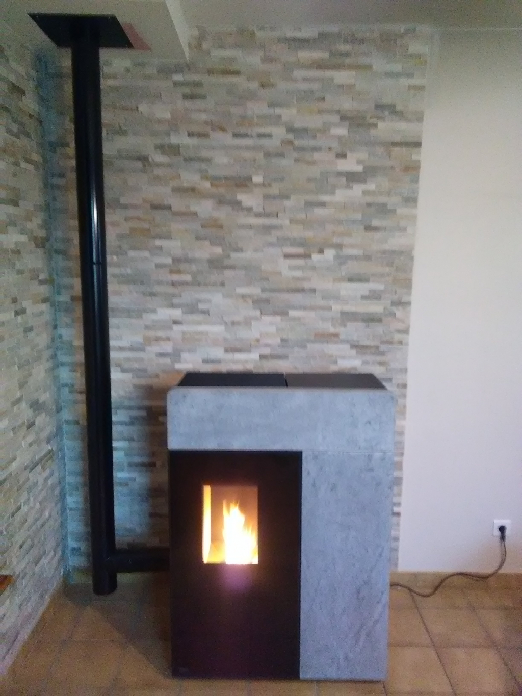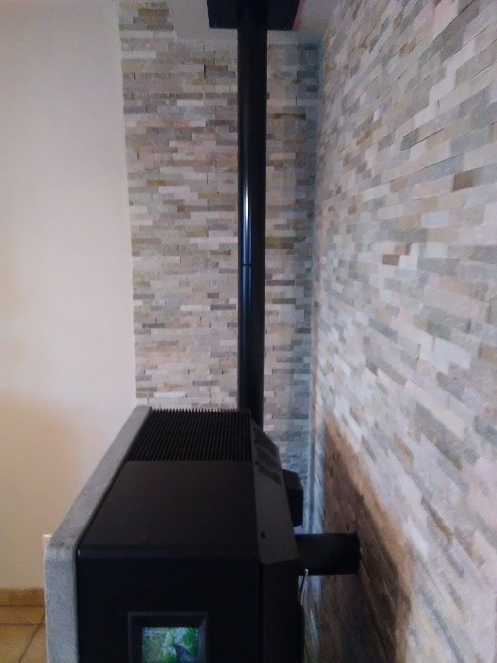 Installation d'un poêle à granulés de bois RIKA, modèle Domo et destruction de la cheminée existante