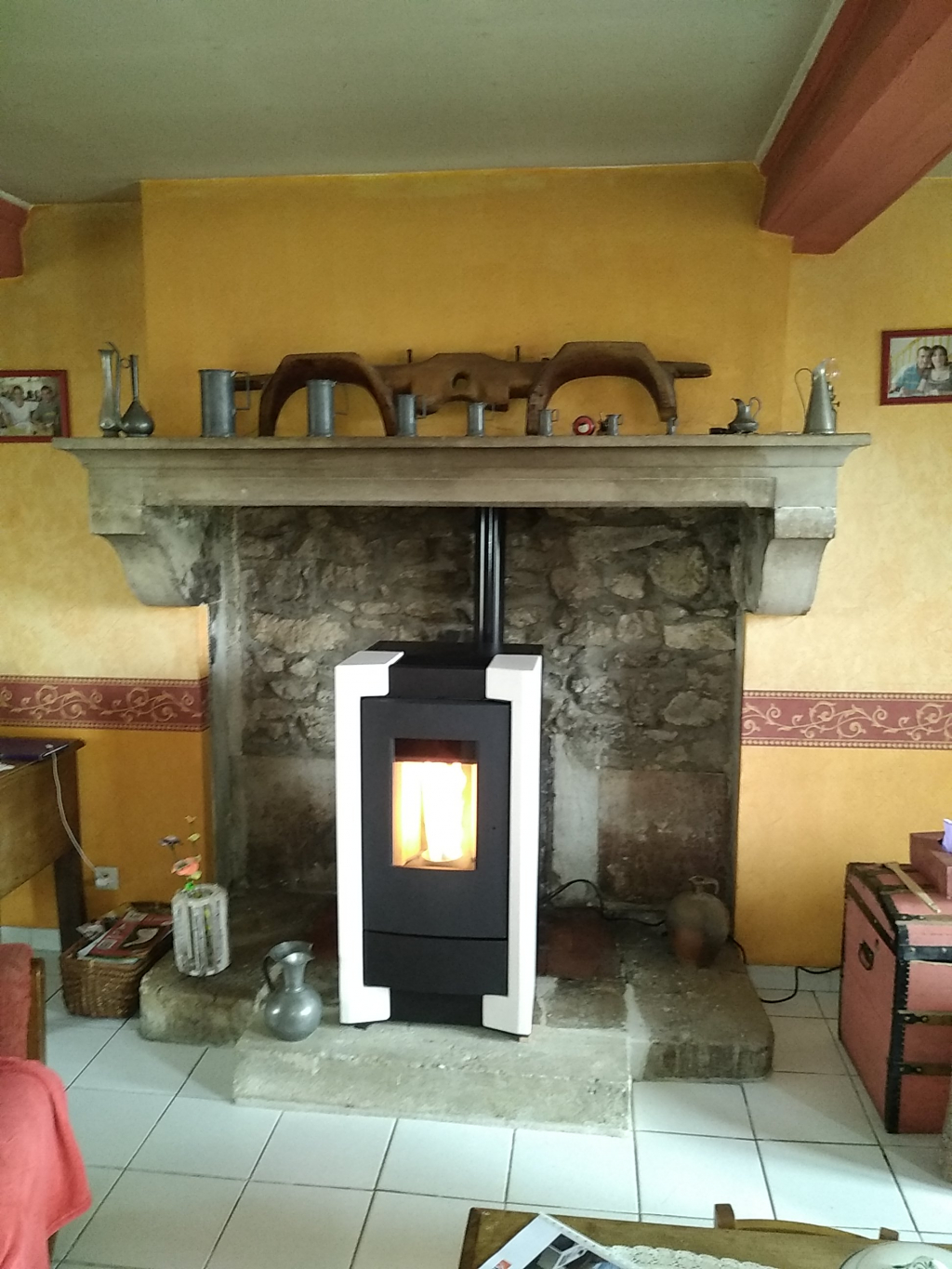 Installation d'un poêle à granulés de bois RIKA, modèle Como en remplacement d'un poêle à bois :