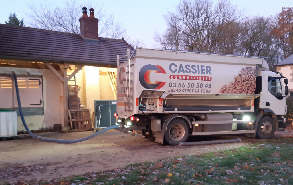 Livraison de granulés de bois en vrac avec notre camion souffleur muni d'une pesée embarquée dans le sud nivernais