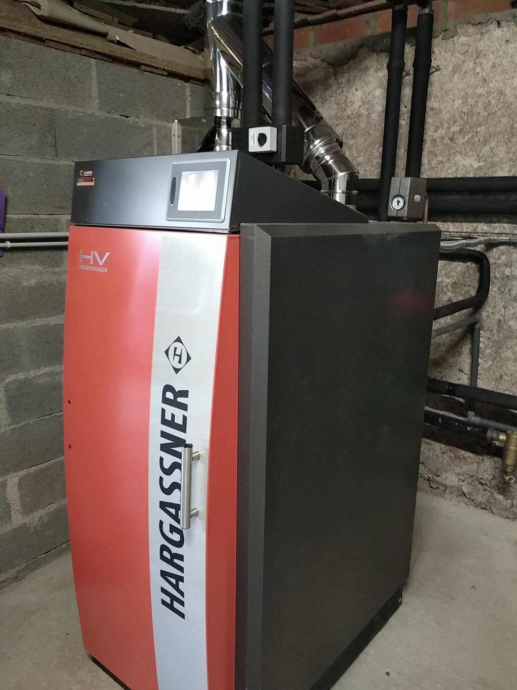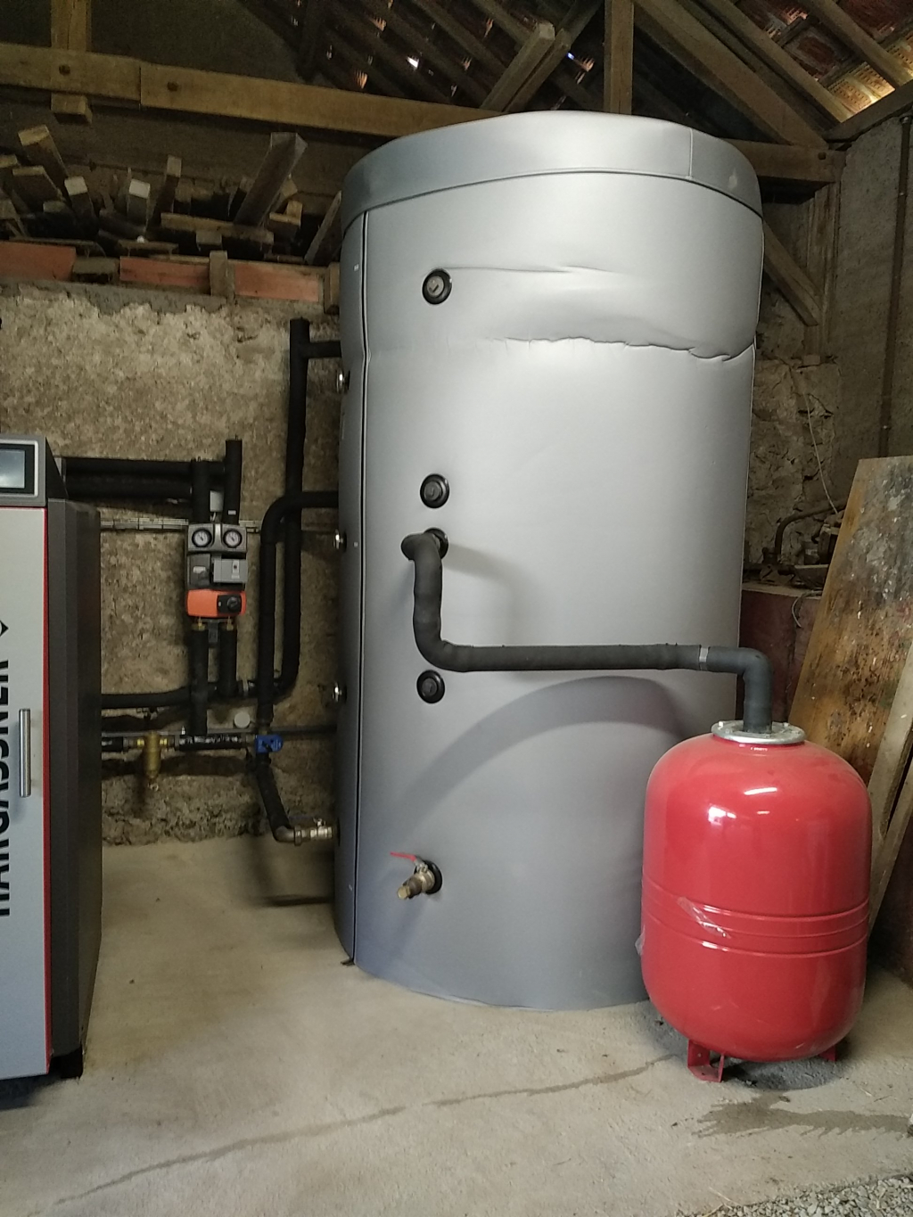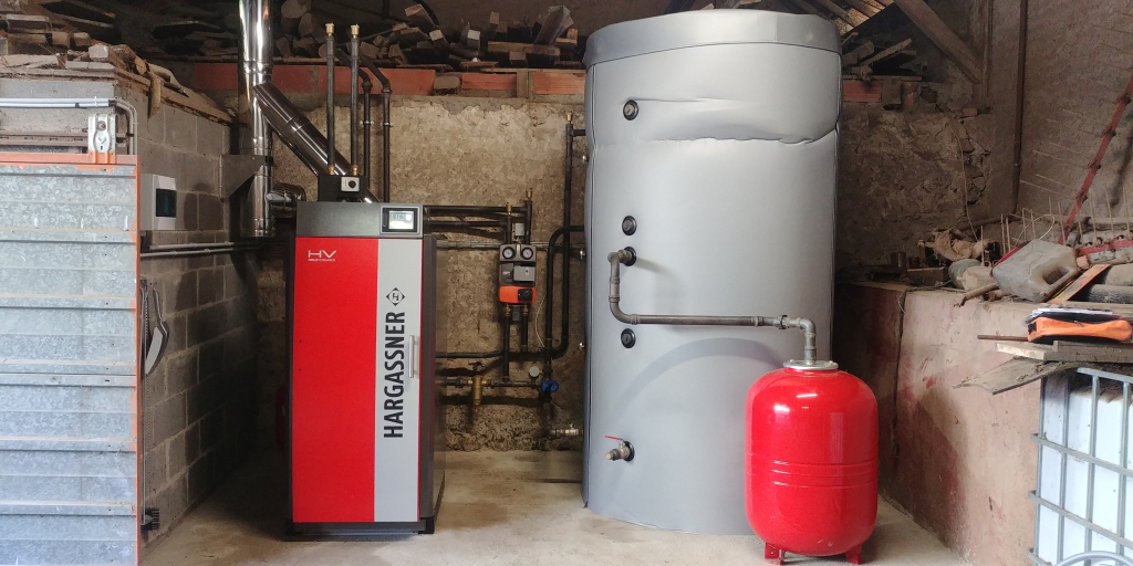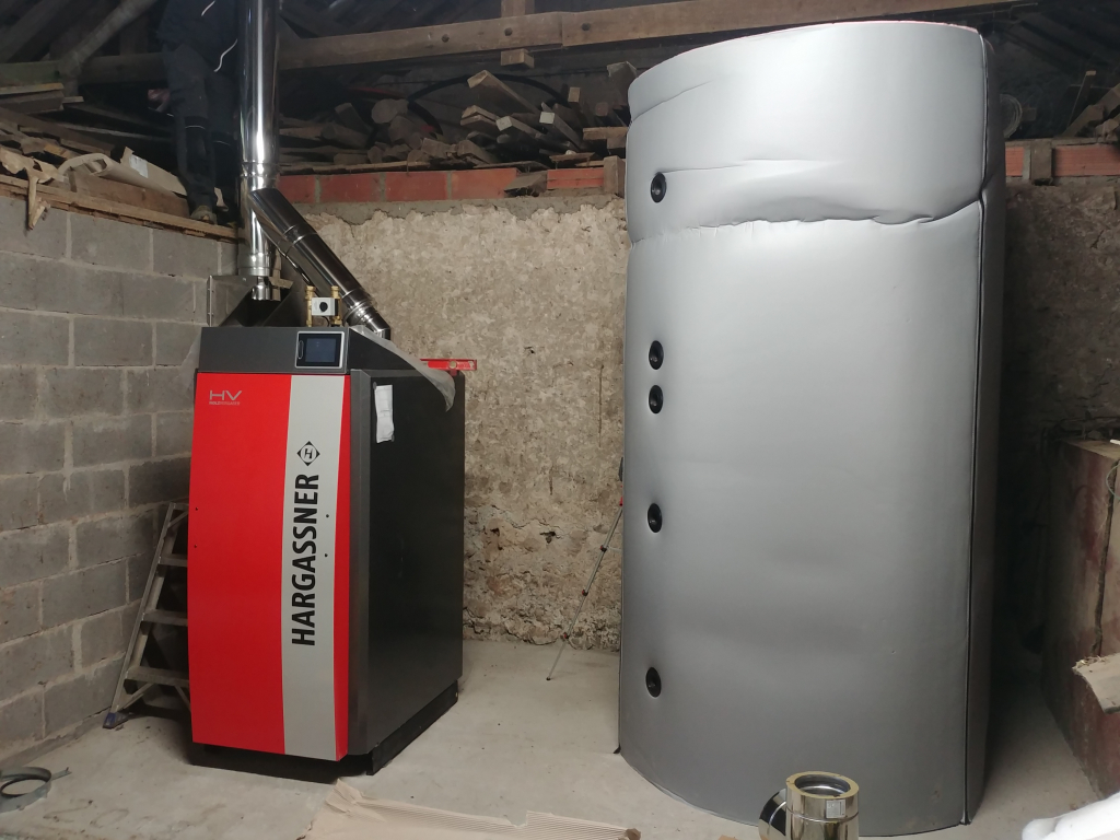Installation d'une chaudière à bûches HARGASSNER, modèle HV40 avec mise en place d'un ballon tampon à stratification de 3000 litres