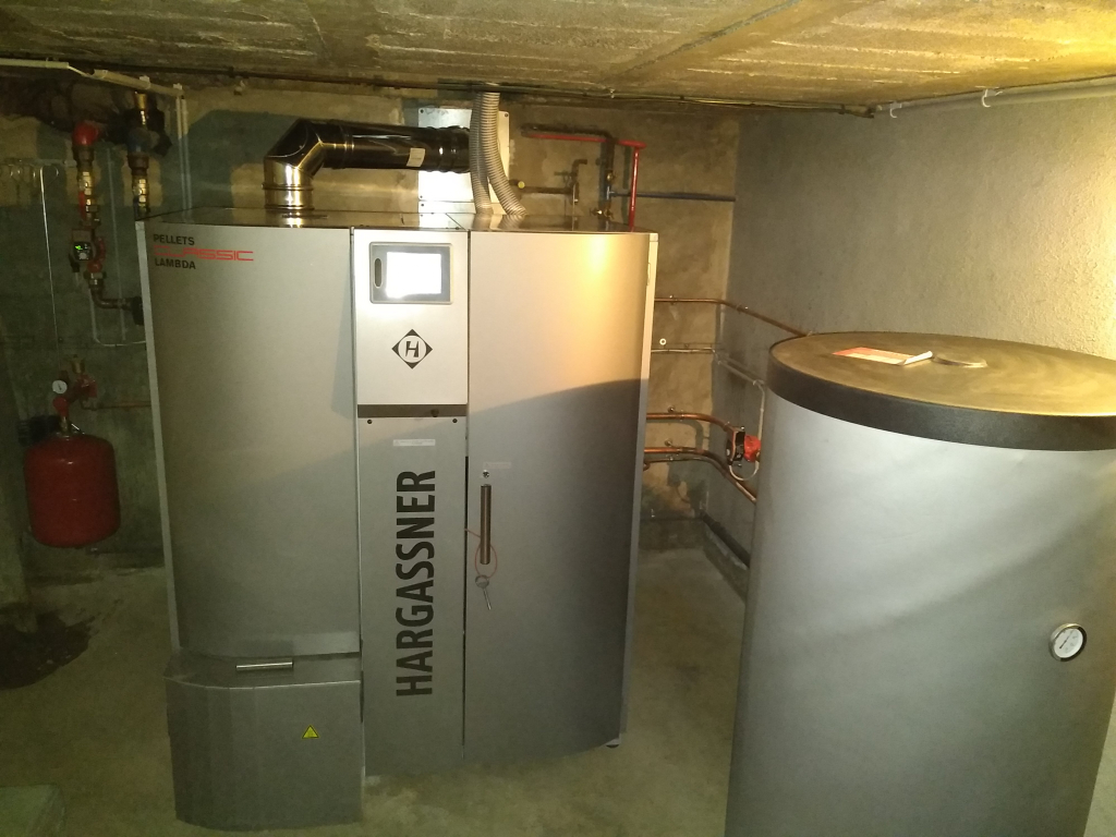 Installation d'une chaudière à granulés de bois HARGASSNER, modèle Classic Lambda 35 kW