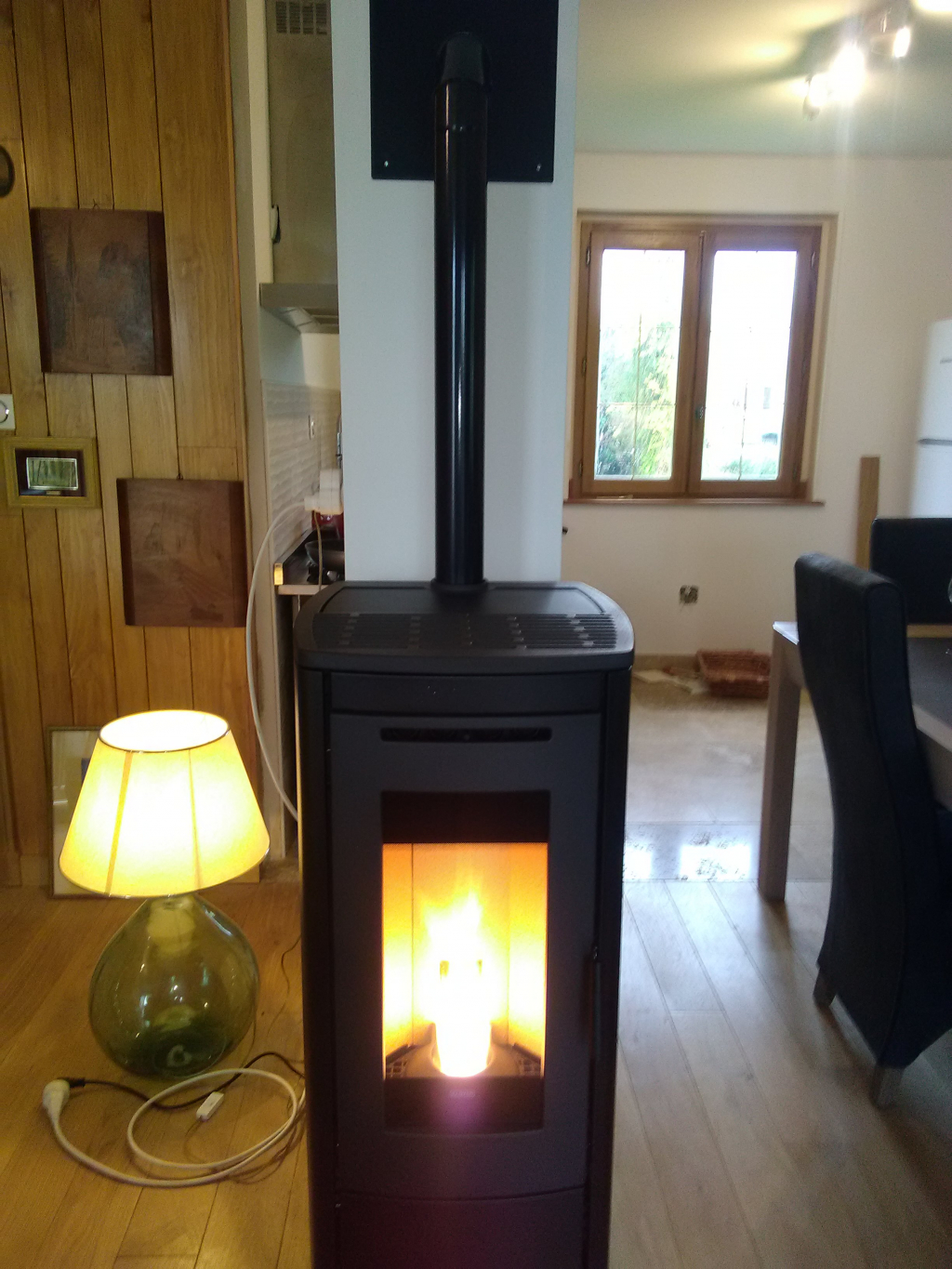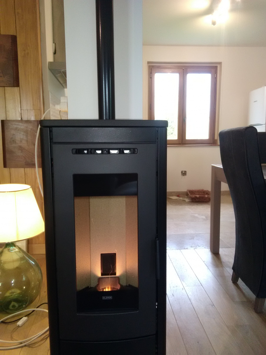 Installation d'un poêle à granulés de bois KLOVER, modèle Soft 80
