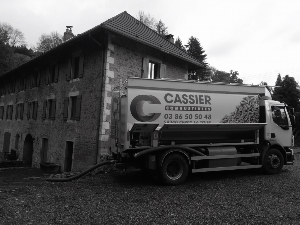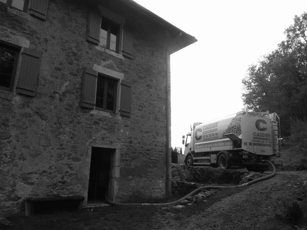 Livraison de granulés de bois en Vrac avec notre camion souffleur muni d'une pesée embarquée