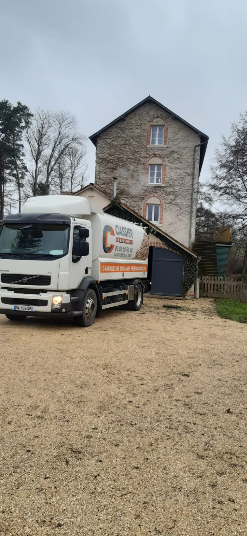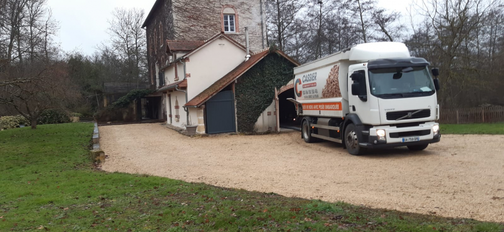 Livraison de granulés de bois en Vrac avec notre camion souffleur muni d'une pesée embarquée