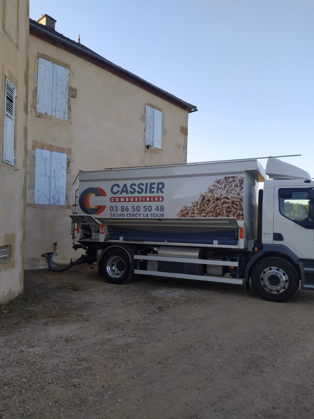 Livraison de granulés de bois en Vrac avec notre camion souffleur muni d'une pesée embarquée dans un silo confectionné sur mesure