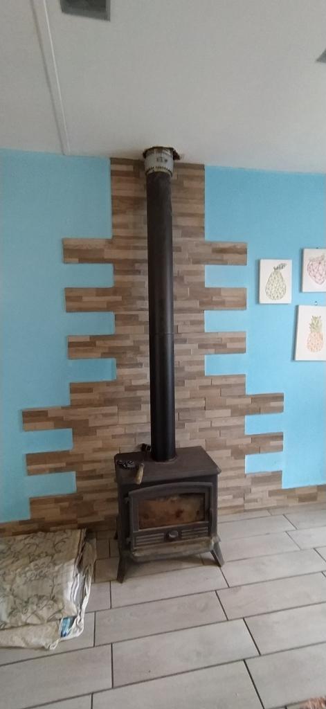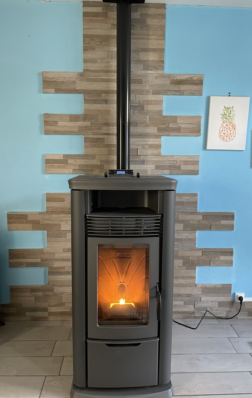 Installation d'un poêle à granulés de bois THERMOROSSI modèle 7000 en remplacement d'un poêle à bois avec gainage du conduit existant