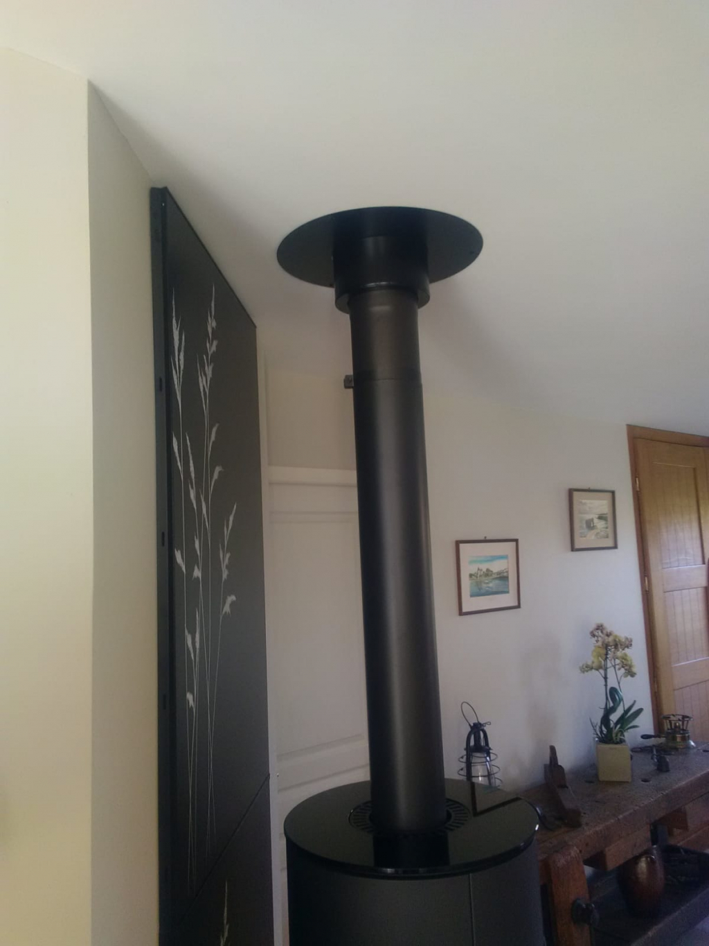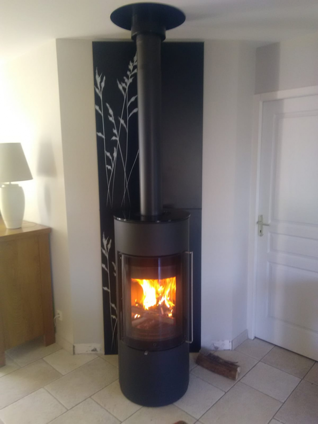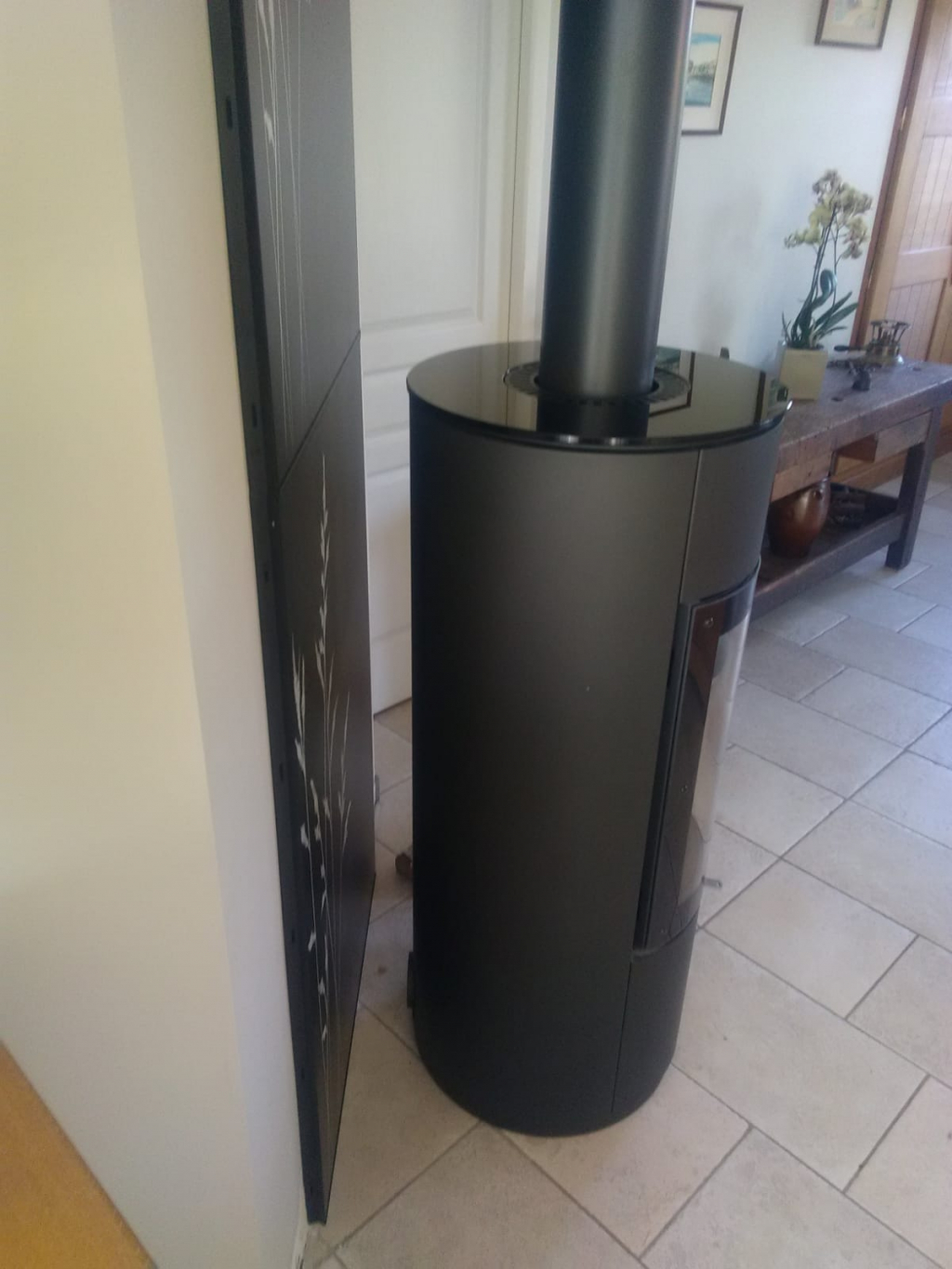 Installation d'un poêle à bois de marque Max Blank, modèle Nimes Steel
