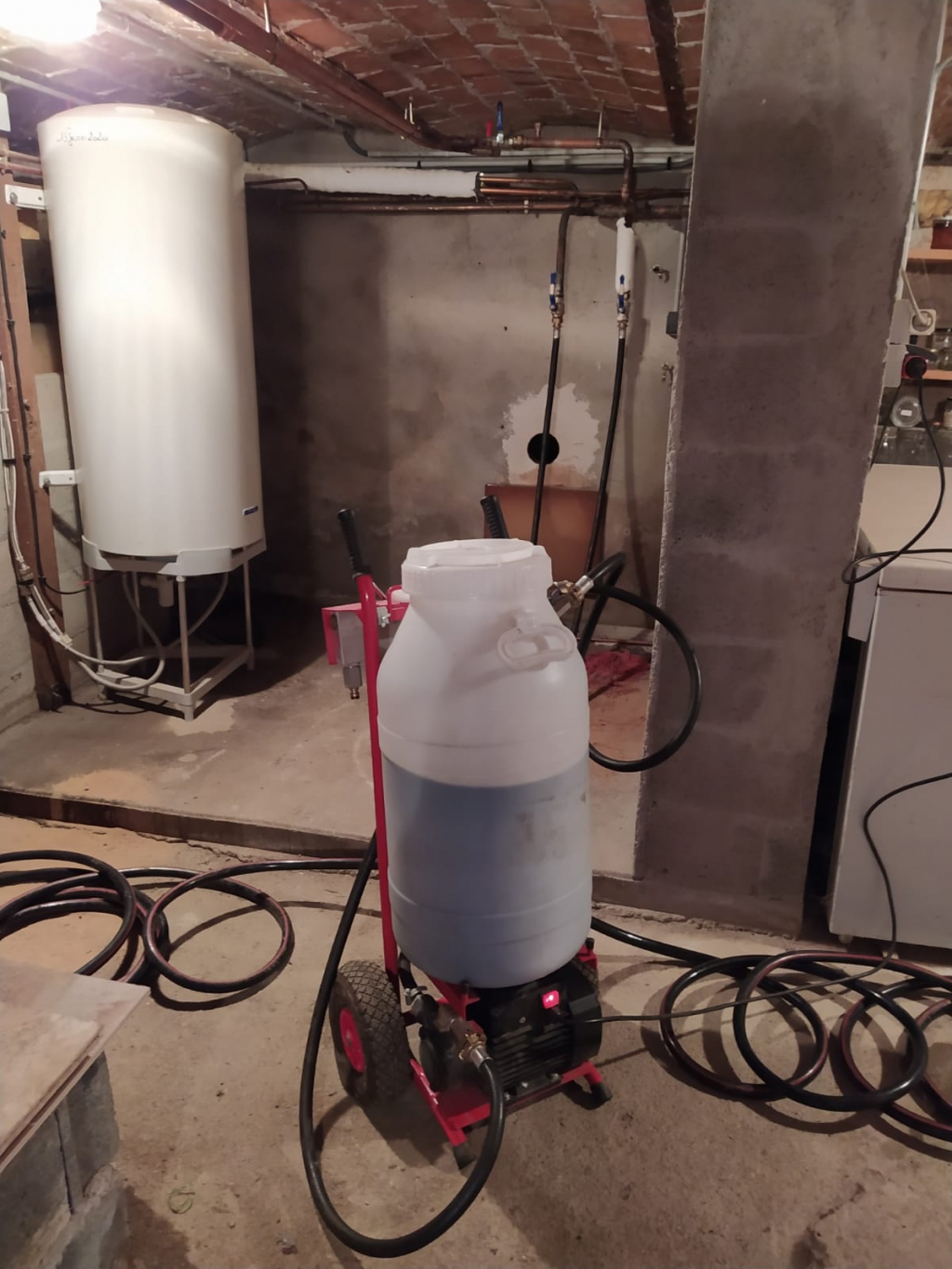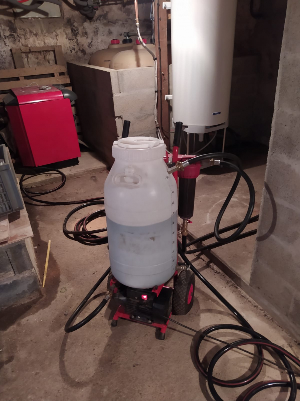 La désemboueuse COROXYL a permis un nettoyage dynamique de l’installation et l'élimination des boues et oxydes métalliques présents dans le circuit de chauffage.