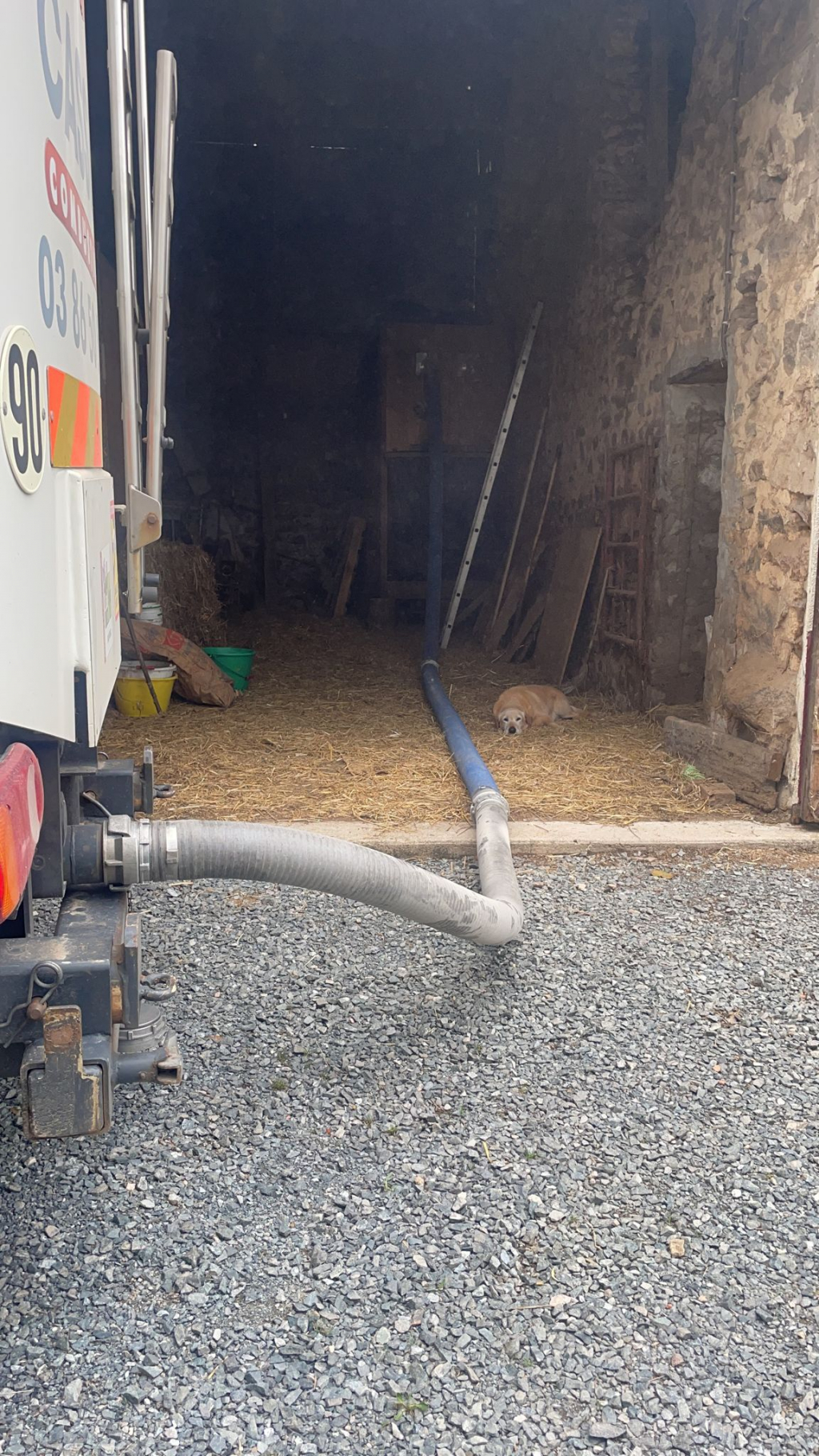 Livraison de granulés de bois (pellets) en vrac dans un silo en bois avec notre camion souffleur muni d'une pesée embarquée.