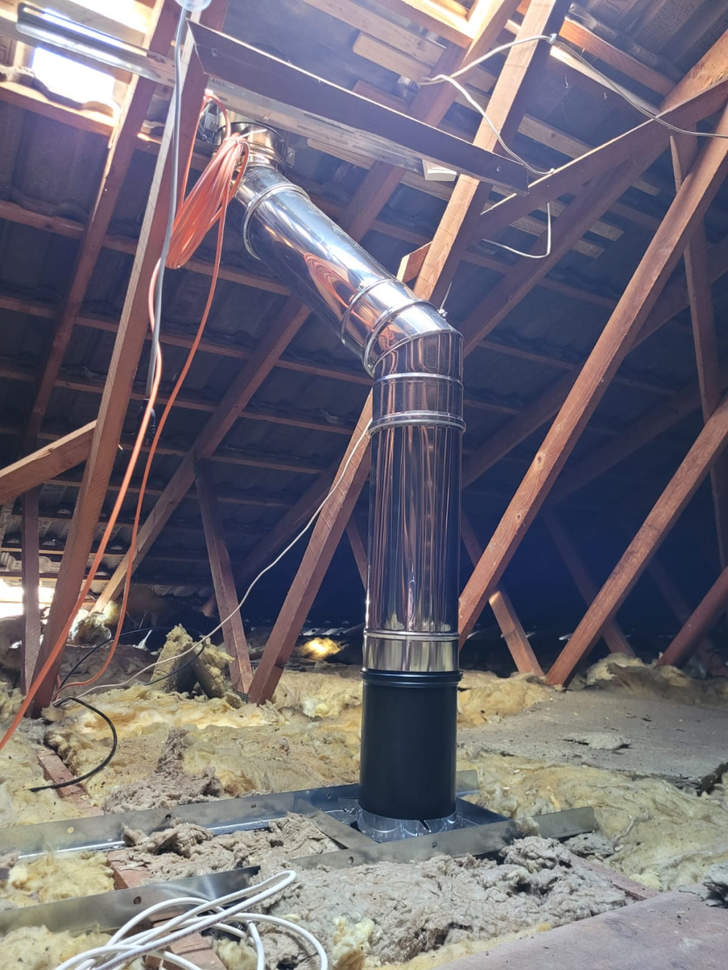 A Toury-Lurcy, au nord de Moulins, installation d'un poêle à granulés de bois/pellets RIKA, modèle Domo avec création de conduit en lieu et place d'une ancienne cheminée.