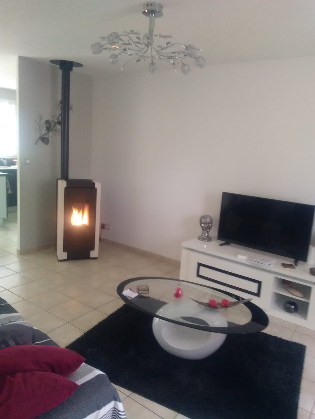 A Coulanges-lès-Nevers, près de Nevers, installation d'un poêle à granulés de bois / pellets RIKA avec sortie sur le dessus, modèle Como II avec gainage du conduit existant.