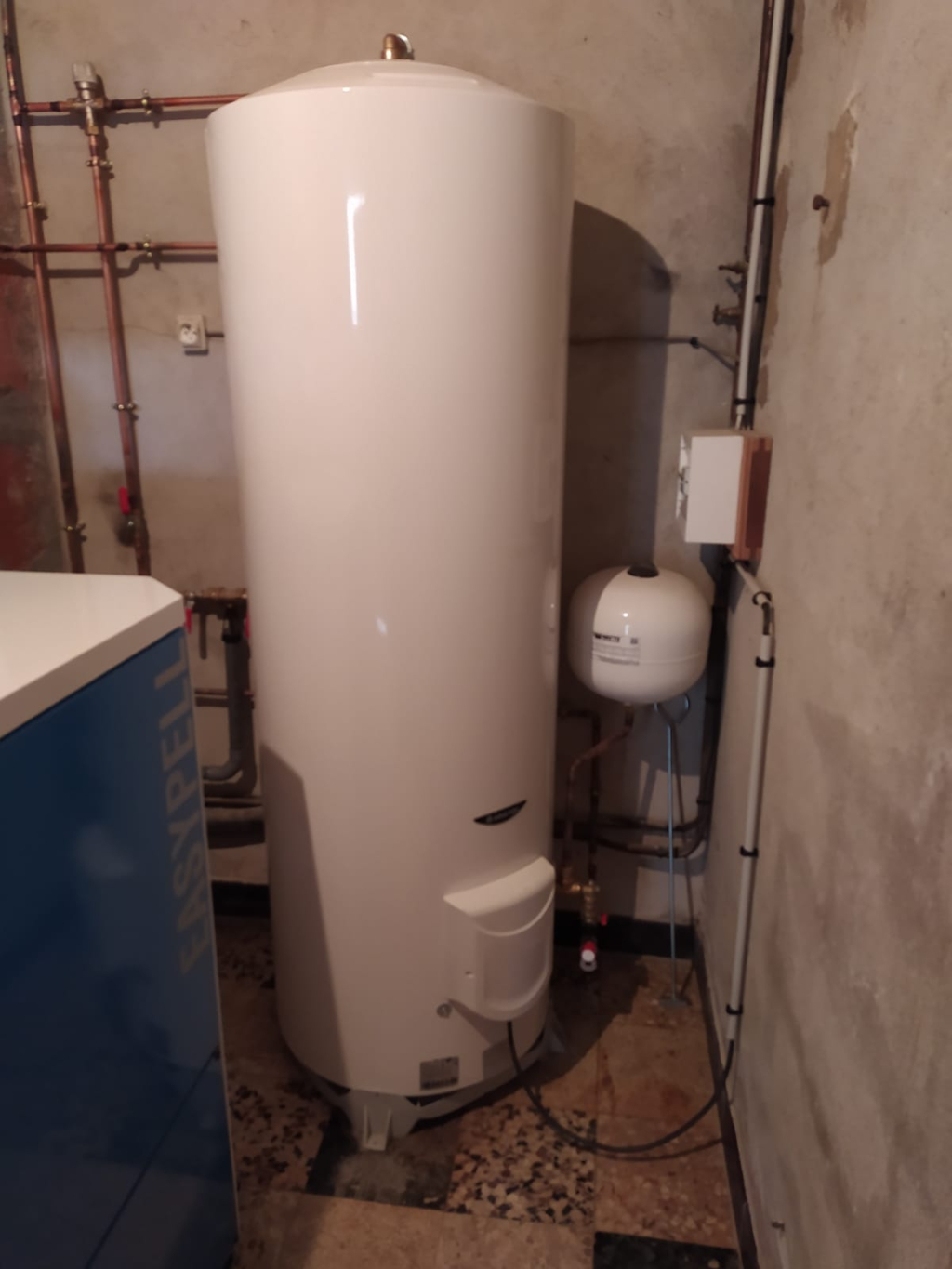 Mise en place d'un chauffe-eau électrique de 300 litres. Notre client a pu bénéficier des aides de l'Etat : Ma Prime Rénov' et la prime Coup de pouce bonifiée pour les CEE (certificats des économies d'énergie).