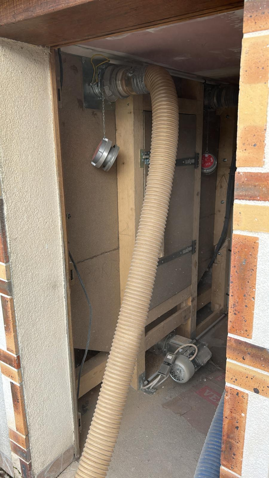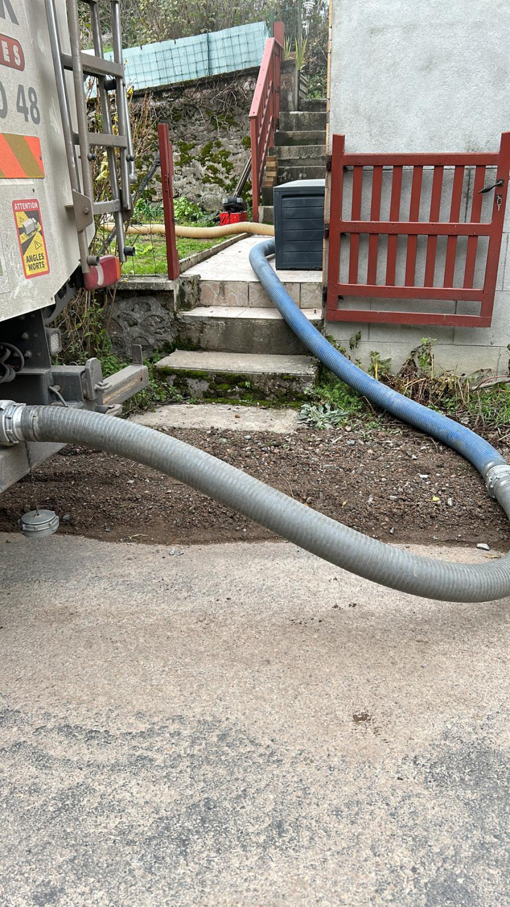 A Montigny-en-Morvan, dans la Nièvre, livraison de granulés de bois (pellets) en vrac dans un silo sur mesure avec notre camion souffleur muni d'une pesée embarquée.