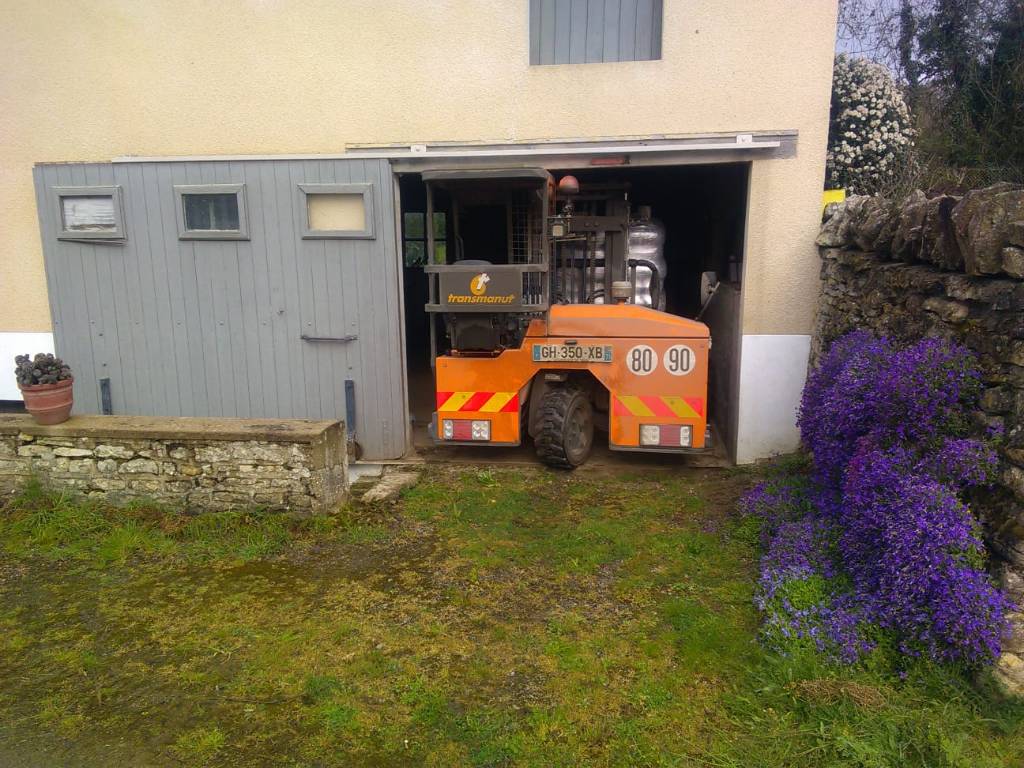 Livraison à Cizely, dans la Nièvre (58), d'une palette de granulés de bois / pellets en sacs avec notre camion équipé d'un chariot embarqué (palette que l'on dépose au plus près du lieu de stockage ou dans le lieu de stockage si accessible).