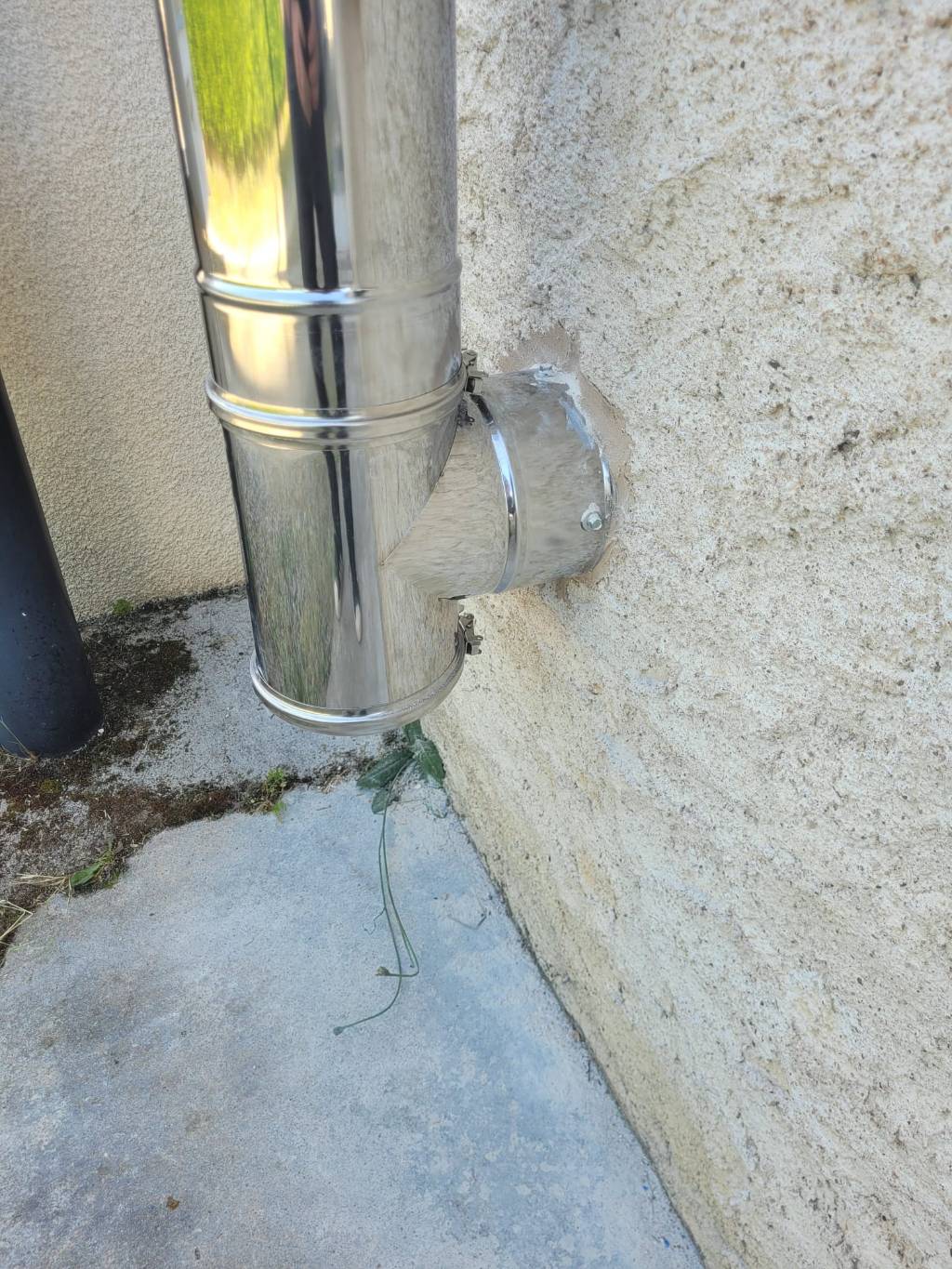 À Sougy-sur-Loire dans la Nièvre (58), mise en place d'un poêle à granulés de bois KLOVER, modèle Soft 80, avec création de conduit extérieur.