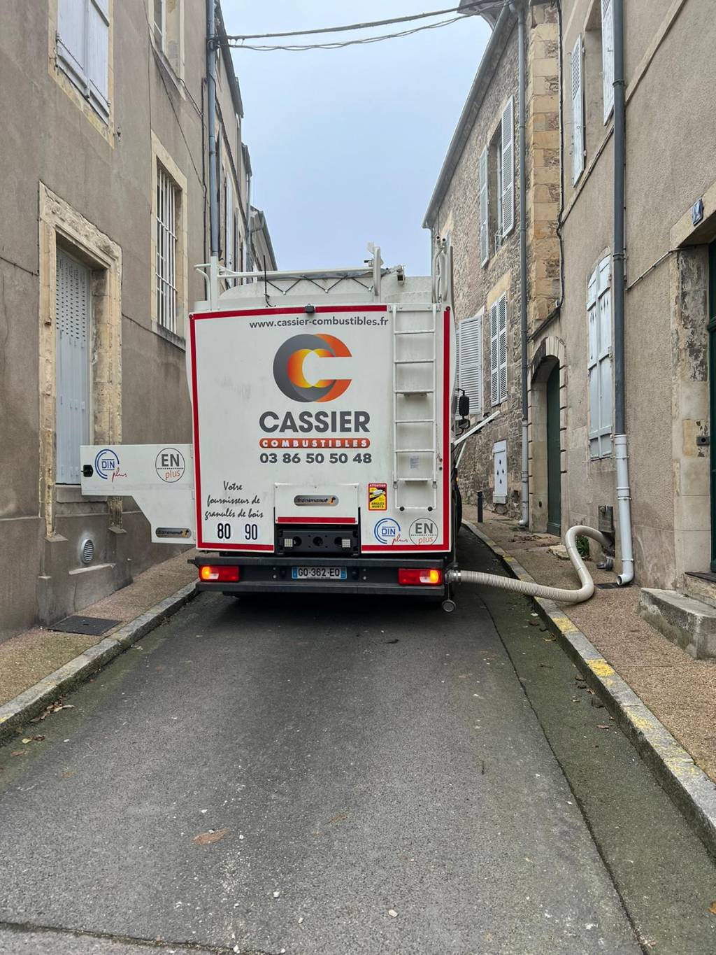 À Nevers, dans la Nièvre (58), livraison de 8 tonnes de granulés (pellets) en vrac dans un silo.