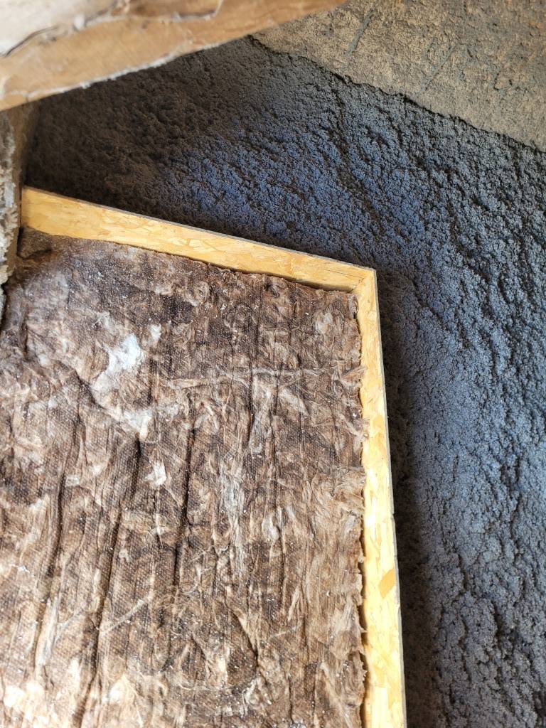 Nous avons également réalisé un chevêtre en OSB et isolé avec 2 couches de laine de verre pour pouvoir ouvrir la porte d'accès aux combles.