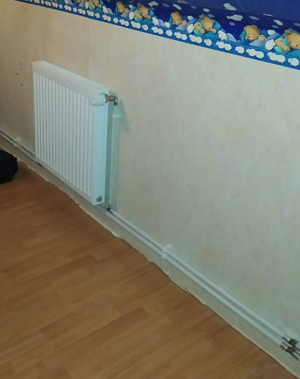 À Charrin, dans la Nièvre (58), pose de radiateurs acier horizontaux et verticaux et raccordement réseaux de chauffage multicouche à sertir