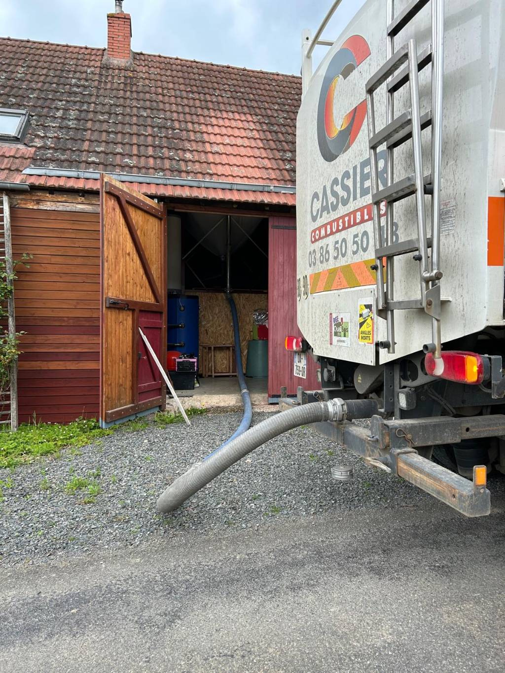 À Millay, dans la Nièvre (58), approvisionnement de granulés de bois (pellets) en vrac dans un silo textile