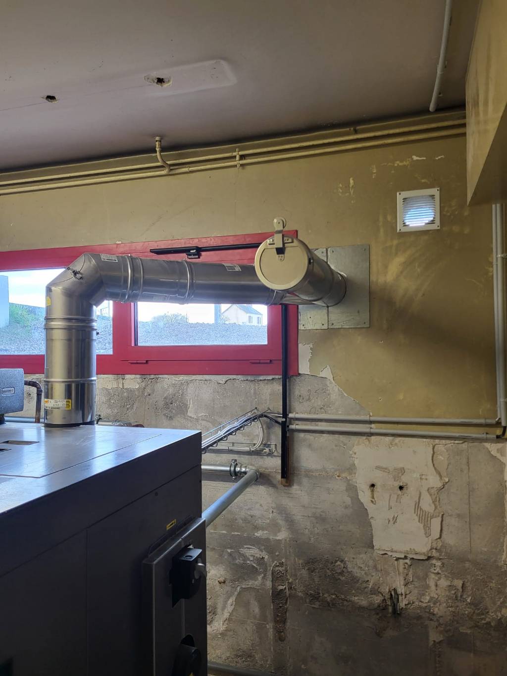- Création d'un conduit de cheminée en double paroi isolé avec chaise murale