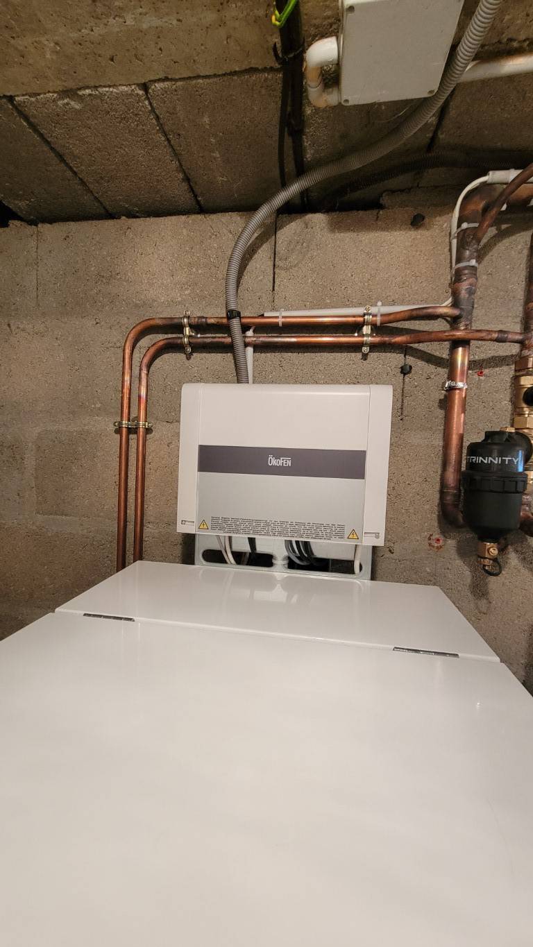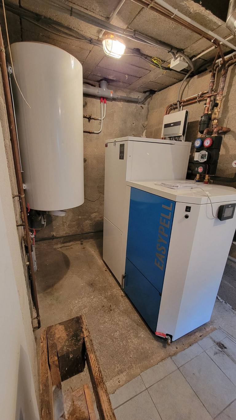 À Guérigny, dans la Nièvre (58), installation d'une chaudière à granulés de bois/pellets Easypell ÖkoFEN, d'une puissance de 16 kW avec son silo à chargement manuel d'une capacité de 165 kg