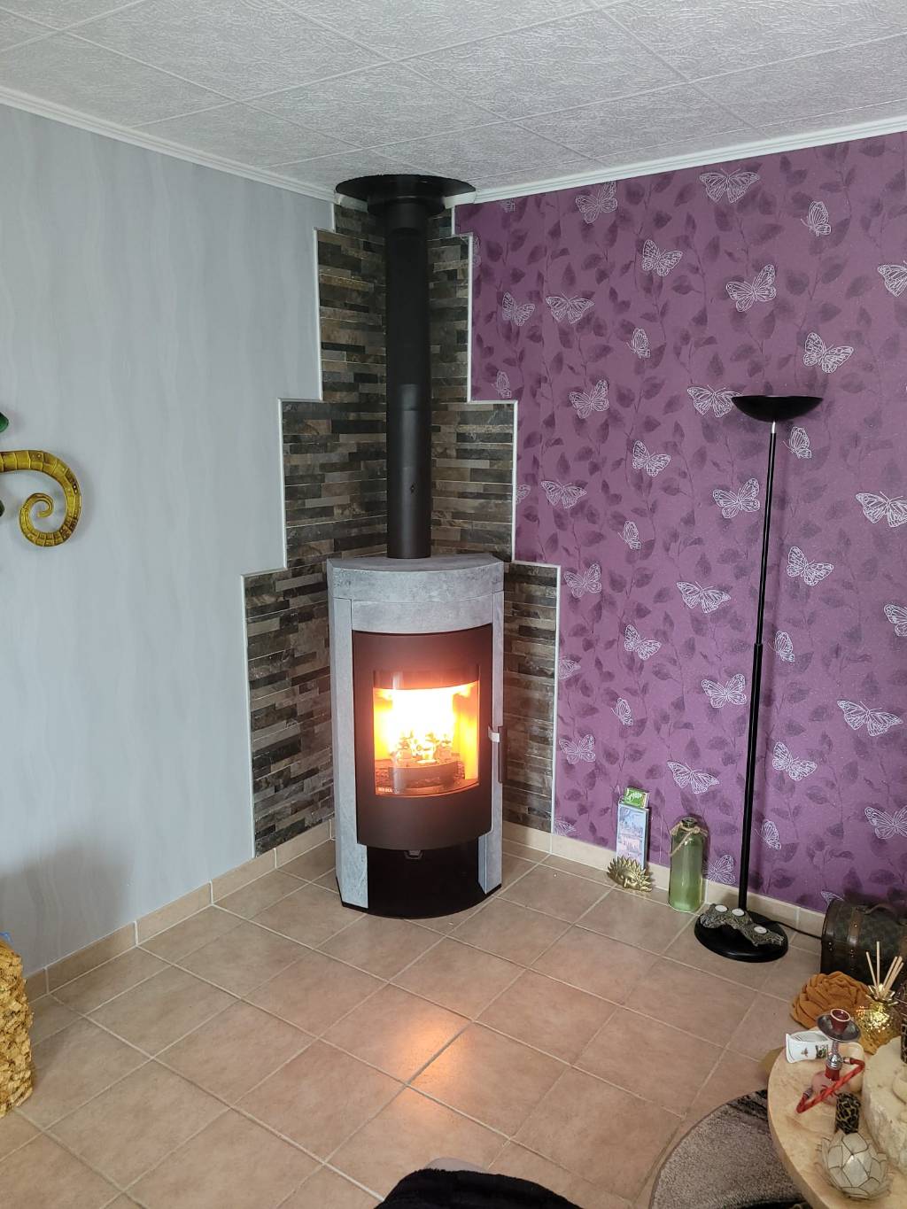 Mise en place d'un poêle à bois bûches de marque Rika modèle Imposa en remplacement d'un poêle à bois