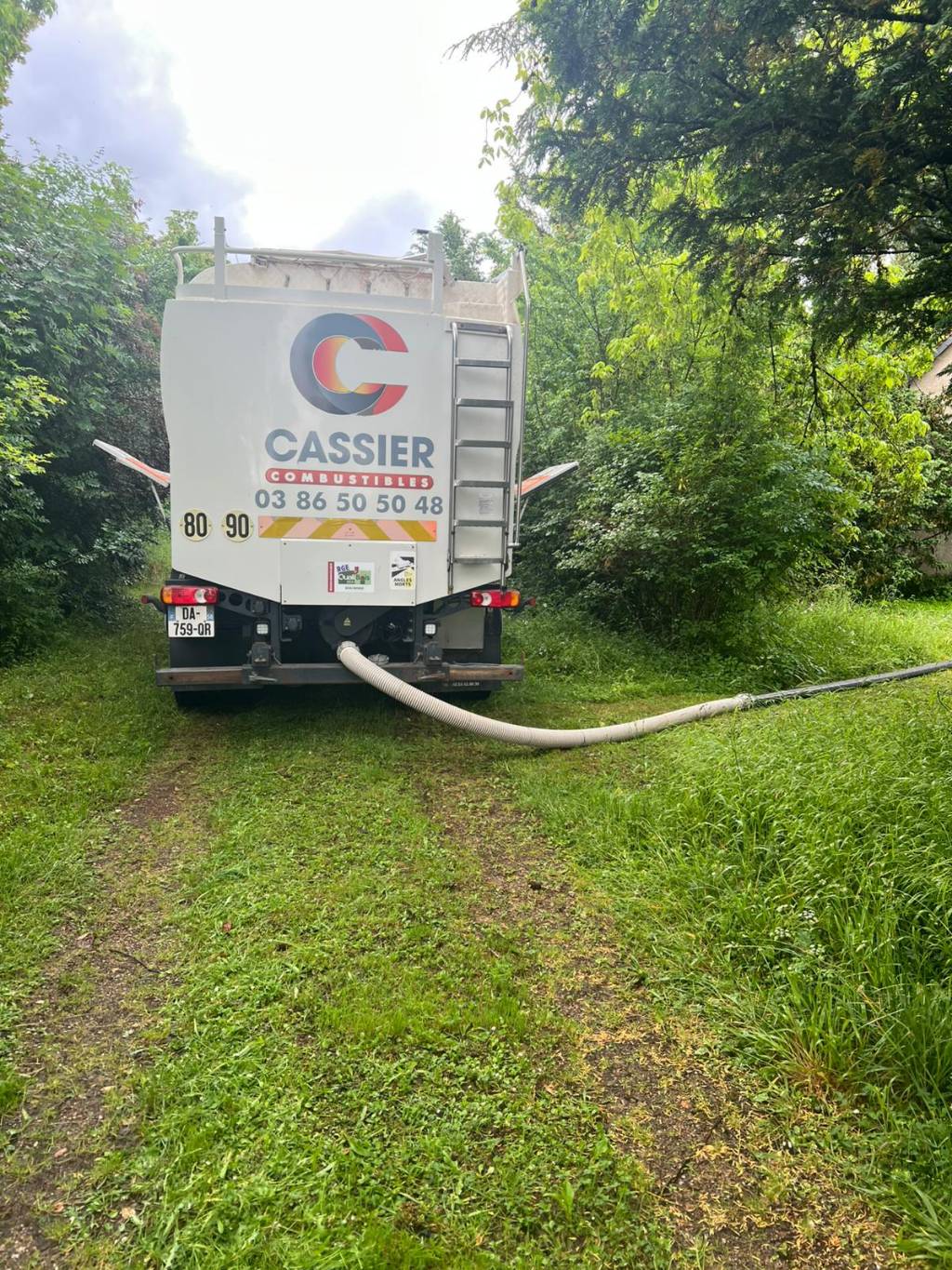 Dans la Nièvre (58), à Alluy, livraison de 5 tonnes de granulés en vrac avec notre camion souffleur muni d'une pesée embarquée et d'un aspirateur de fines