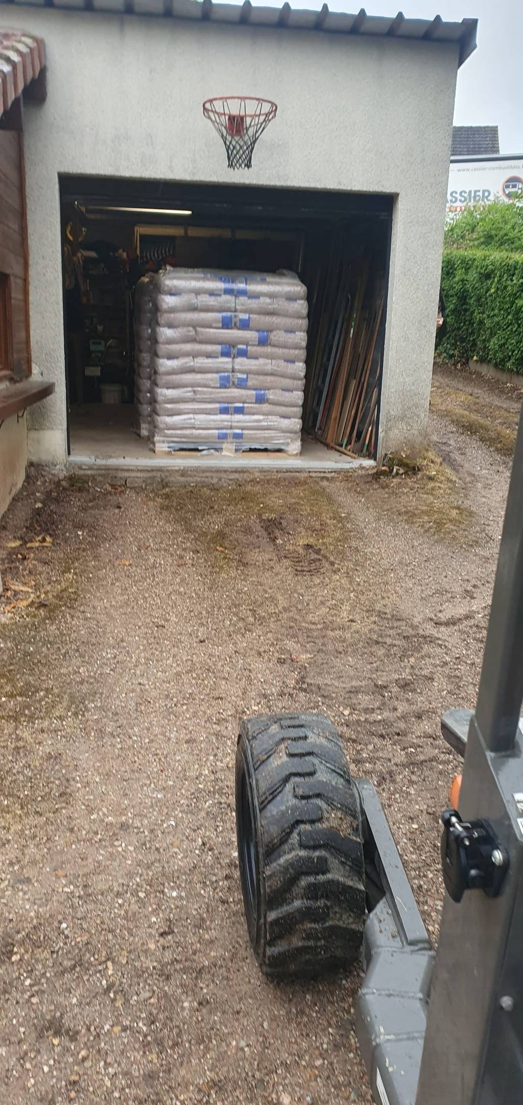 Livraison de granulés de bois en sacs dans un garage difficile d’accès à Decize dans la Nièvre (58)