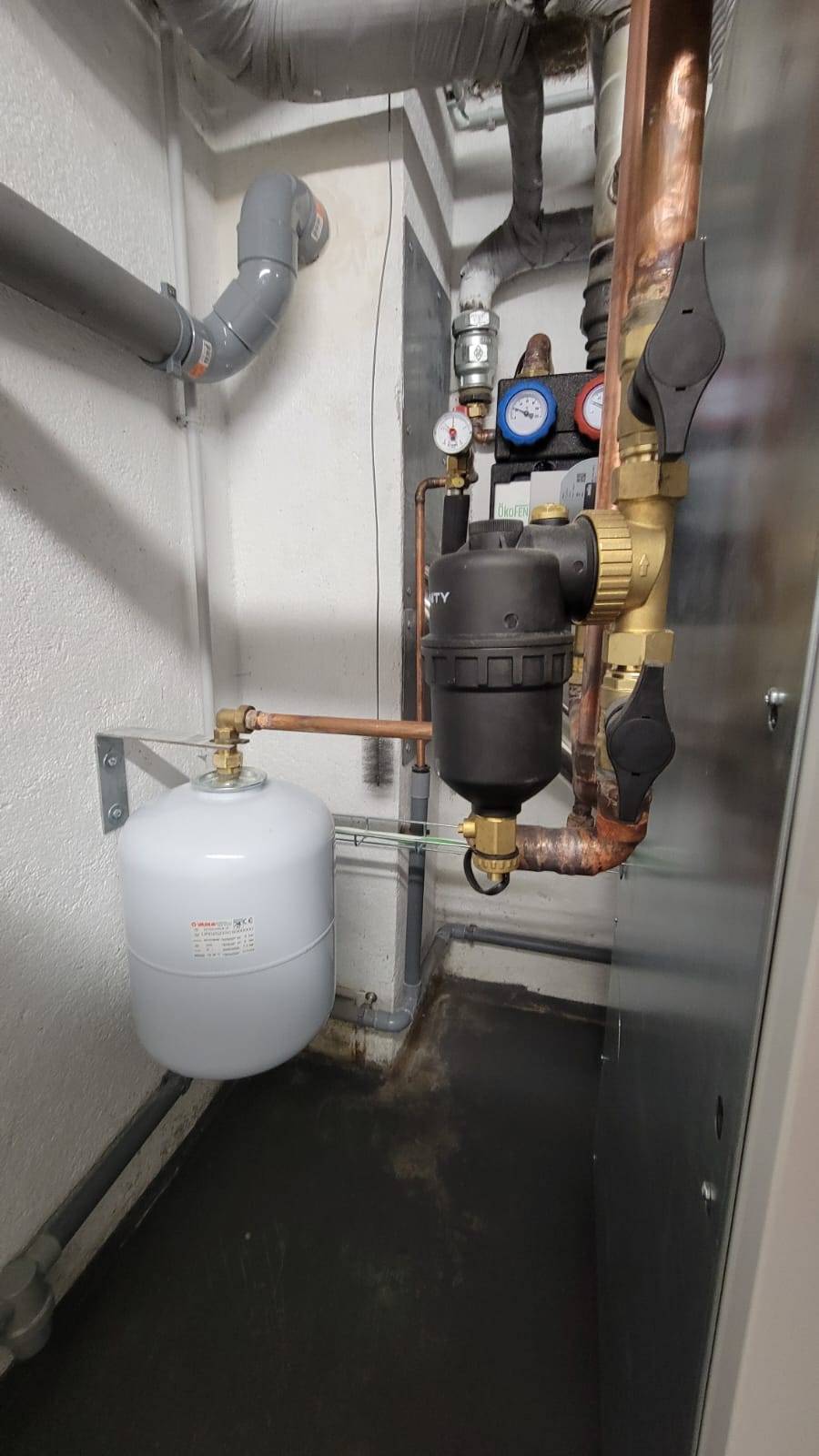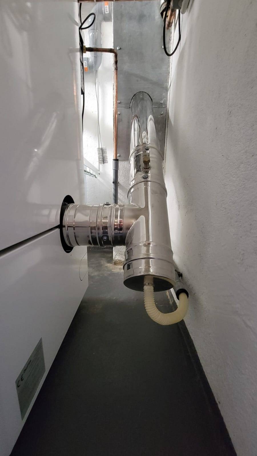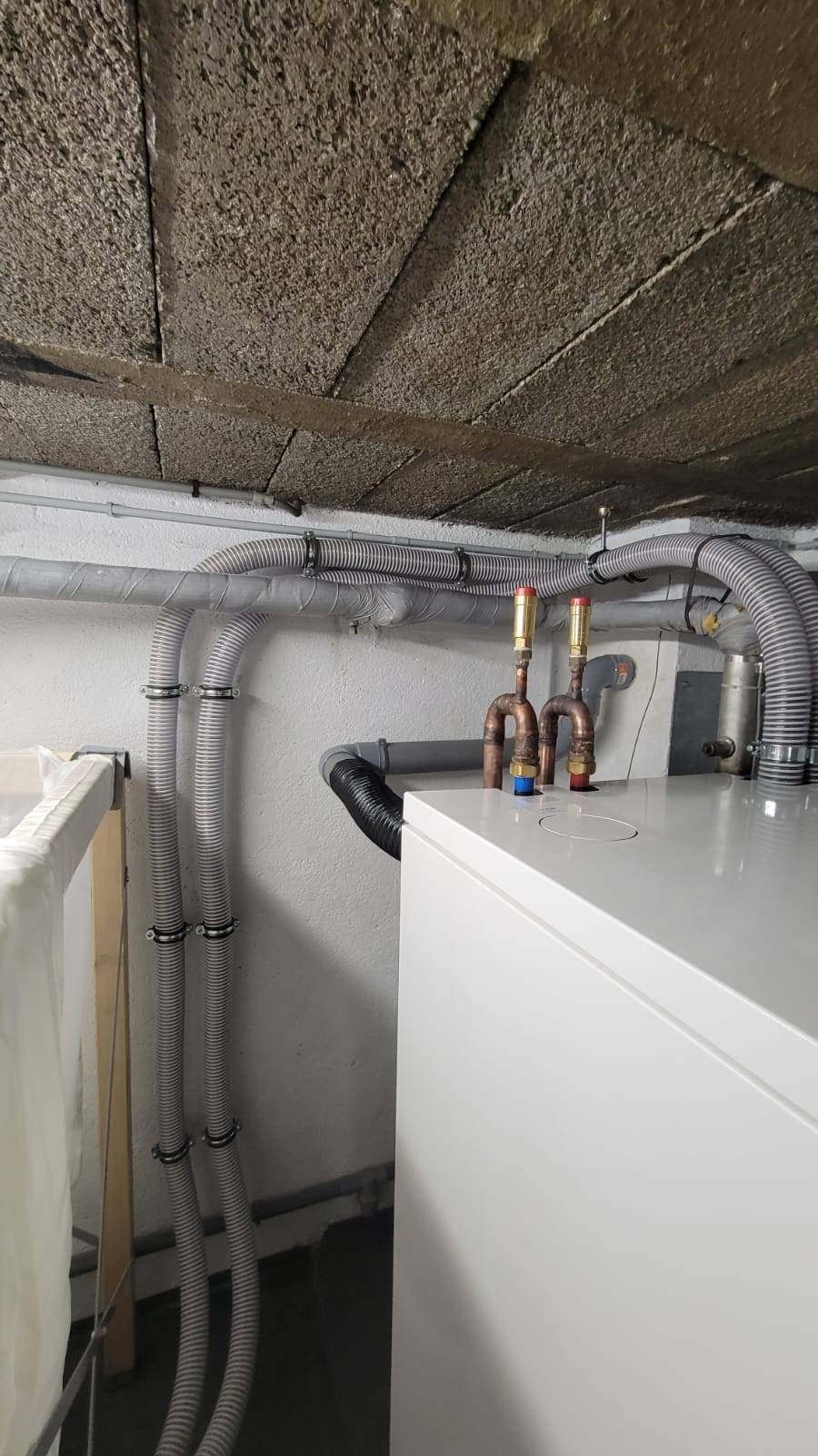 Le réseau hydraulique existant a été repris intégralement en diamètre 2", garantissant un débit optimal et une meilleure distribution de la chaleur. Une ventilation haute et basse a été créée en PVC, assurant une aération conforme aux normes et adaptée au fonctionnement sécurisé de la chaufferie.
