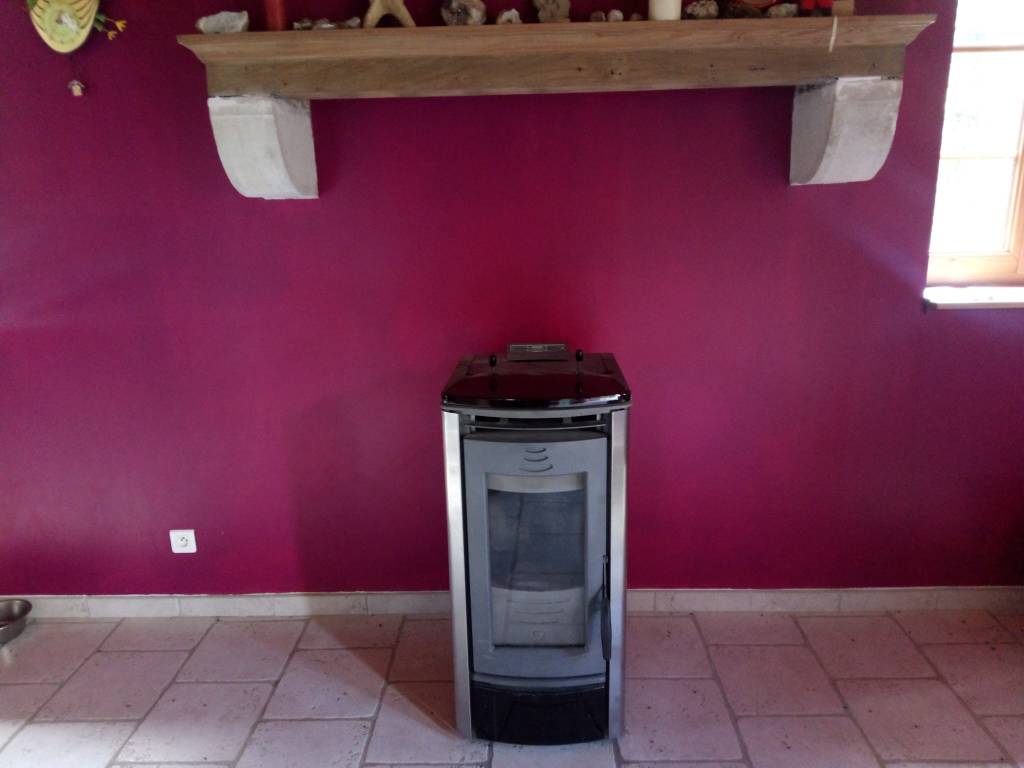 Nous avons procédé au déplacement d’un poêle à granulés Thermorossi que nous avons remplacé par une cuisinière à bois à bûches de la même marque, modèle Margot Evo.