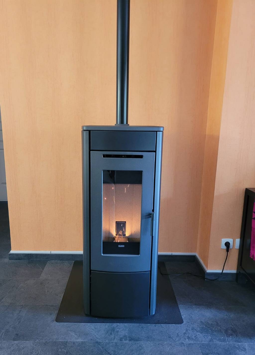 Installation d’un poêle à granulés de bois modèle Soft 100 de la marque KLOVER distribué par Laudevco sur la commune de Marzy.