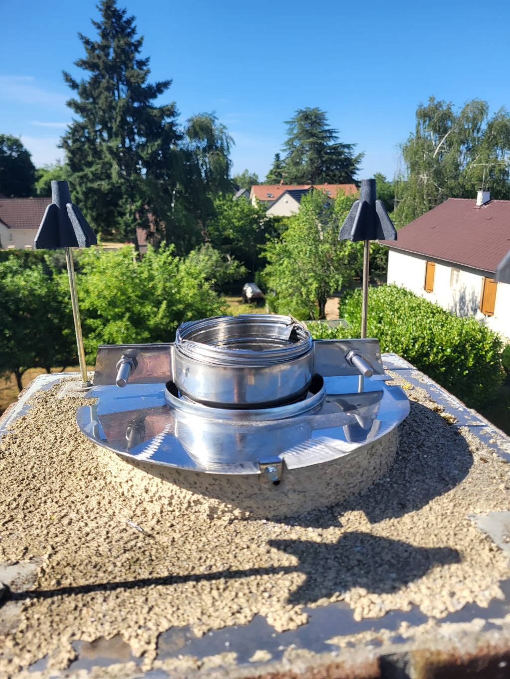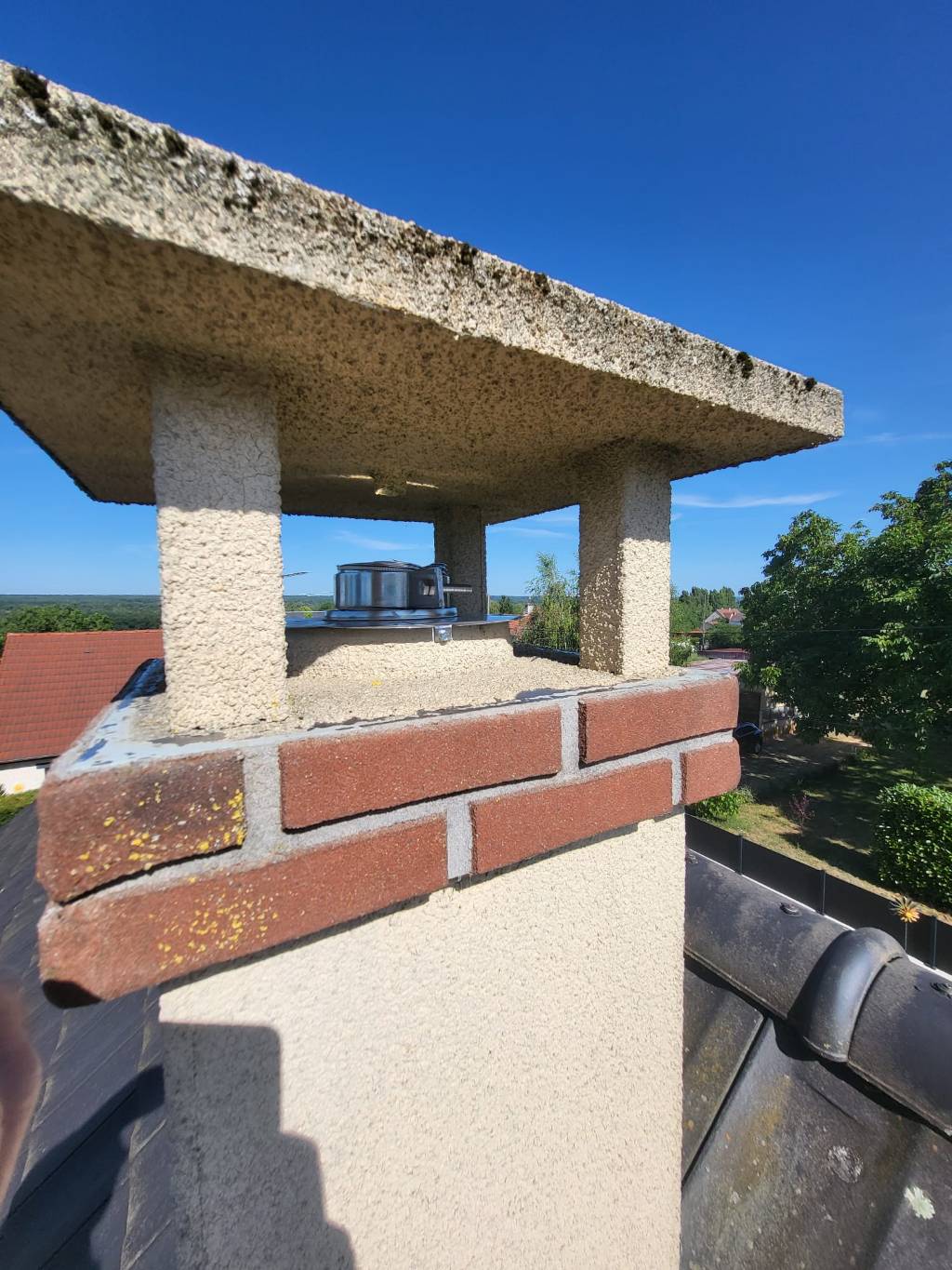 - Étanchéité haute du conduit : création d’une plaque en partie haute permettant de garantir l’étanchéité et le maintien de la gaine, puis repose du chapeau existant.