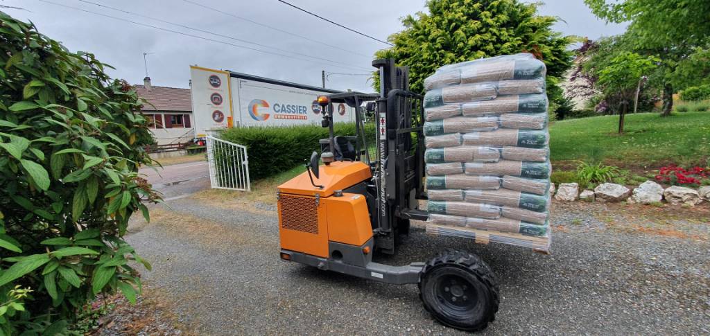 Livraison de 66 sacs de granulés de bois 100 % résineux, conditionnés en palette, effectuée sur la commune de Luzy.