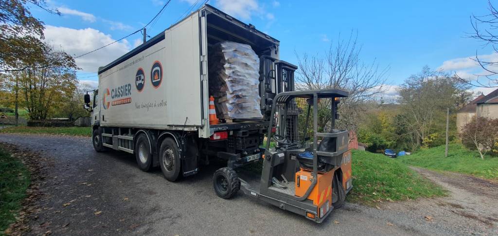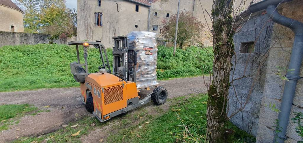 Livraison d’une palette de bois de chauffage en bûches de 25 cm effectuée sur la commune d’Isenay.