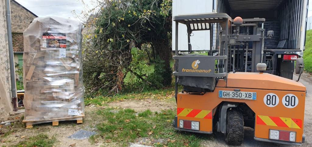 Livraison d’une palette de bois bûches Crepito en longueur 25 cm, représentant environ 2,60 stères.