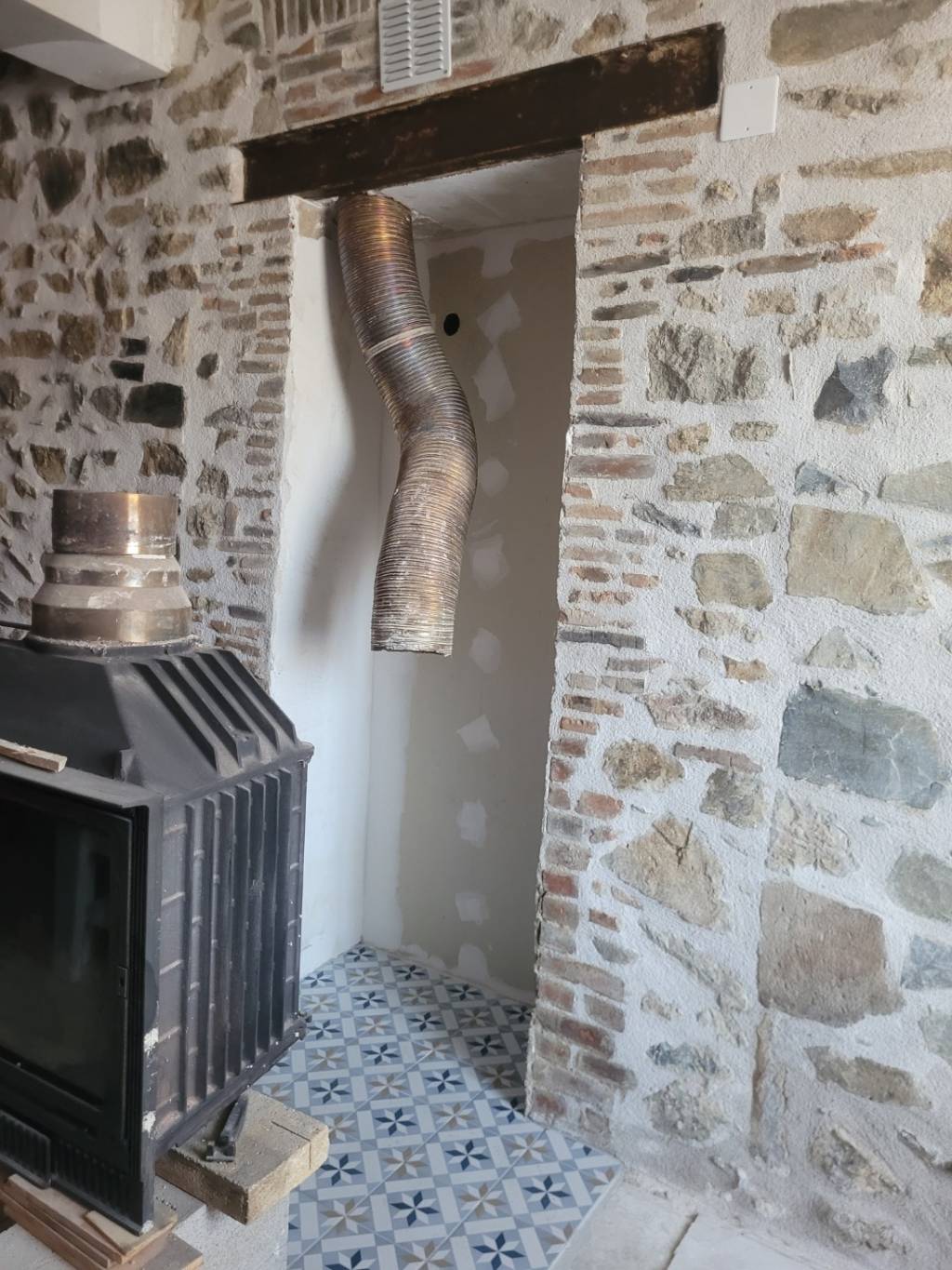 Nous avons tubé une cheminée existante en diamètre 100 et avons raccordé le poêle au tubage en diamètre 80, assurant ainsi une évacuation des fumées conforme, efficace et durable.