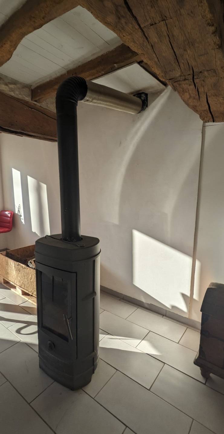 Le tubage de la cheminée existante en diamètre 100 permet d’assurer une évacuation des fumées conforme et sécurisée. Le raccordement du poêle à granulés en diamètre 80 garantit une compatibilité optimale avec l’appareil installé, tout en respectant les préconisations techniques du fabricant. Cette configuration assure un fonctionnement fiable, un bon tirage et un rendement énergétique amélioré par rapport à l’ancien poêle à bois.