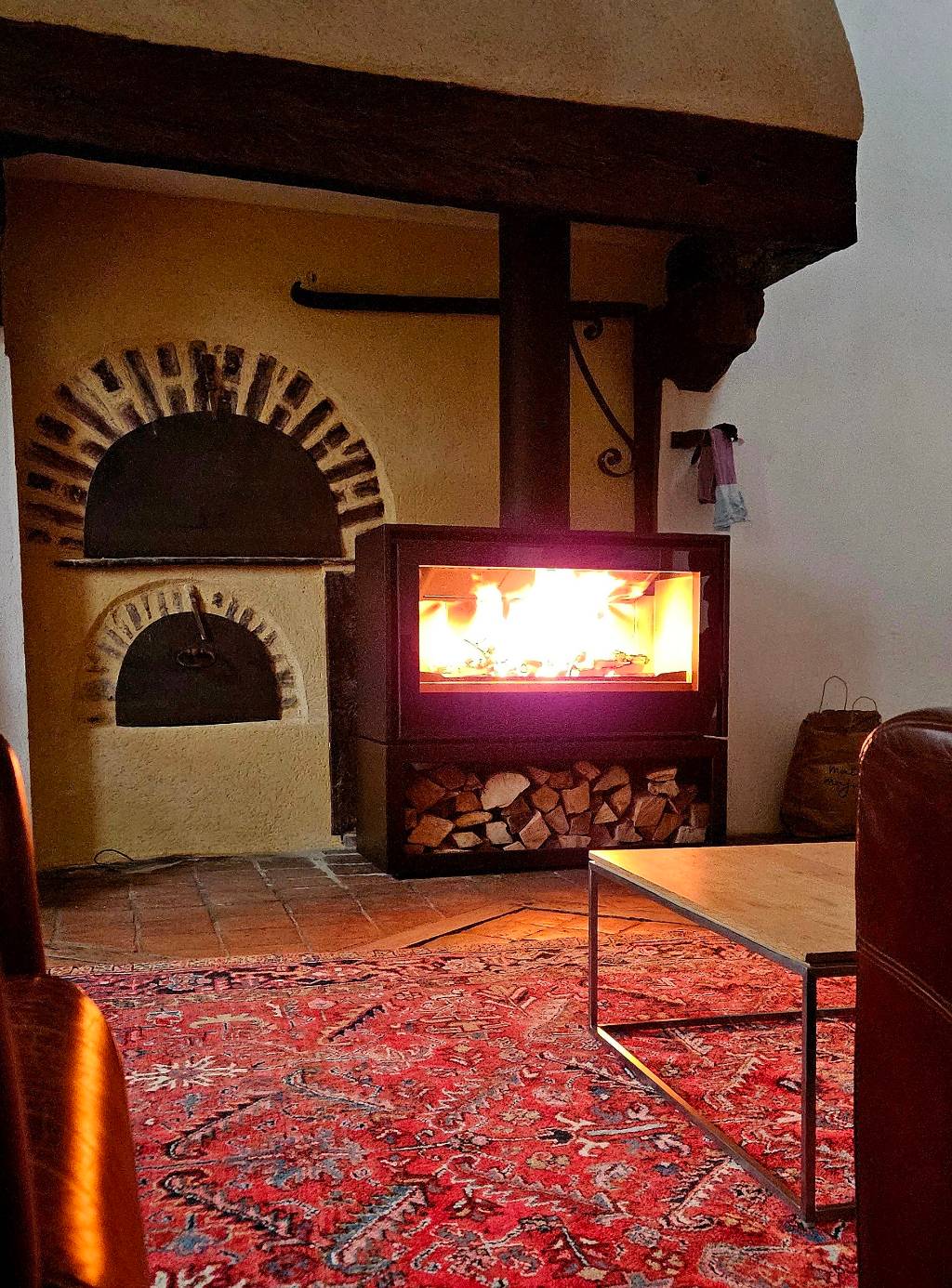 Nous avons installé un poêle-cheminée alliant les avantages d'un insert à bois, mais sans les inconvénients. L'appareil SANCY 1000 de chez SEGUIN dispose d'une grande surface vitrée qui permet une belle vision des flammes ; le modèle existe également en double face.