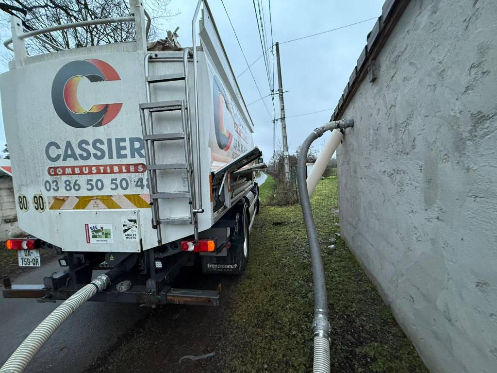 Notre chauffeur s'est garé le long du bâtiment de stockage permettant d'utiliser le moins de tuyau possible et de livrer directement via la bouche de remplissage.